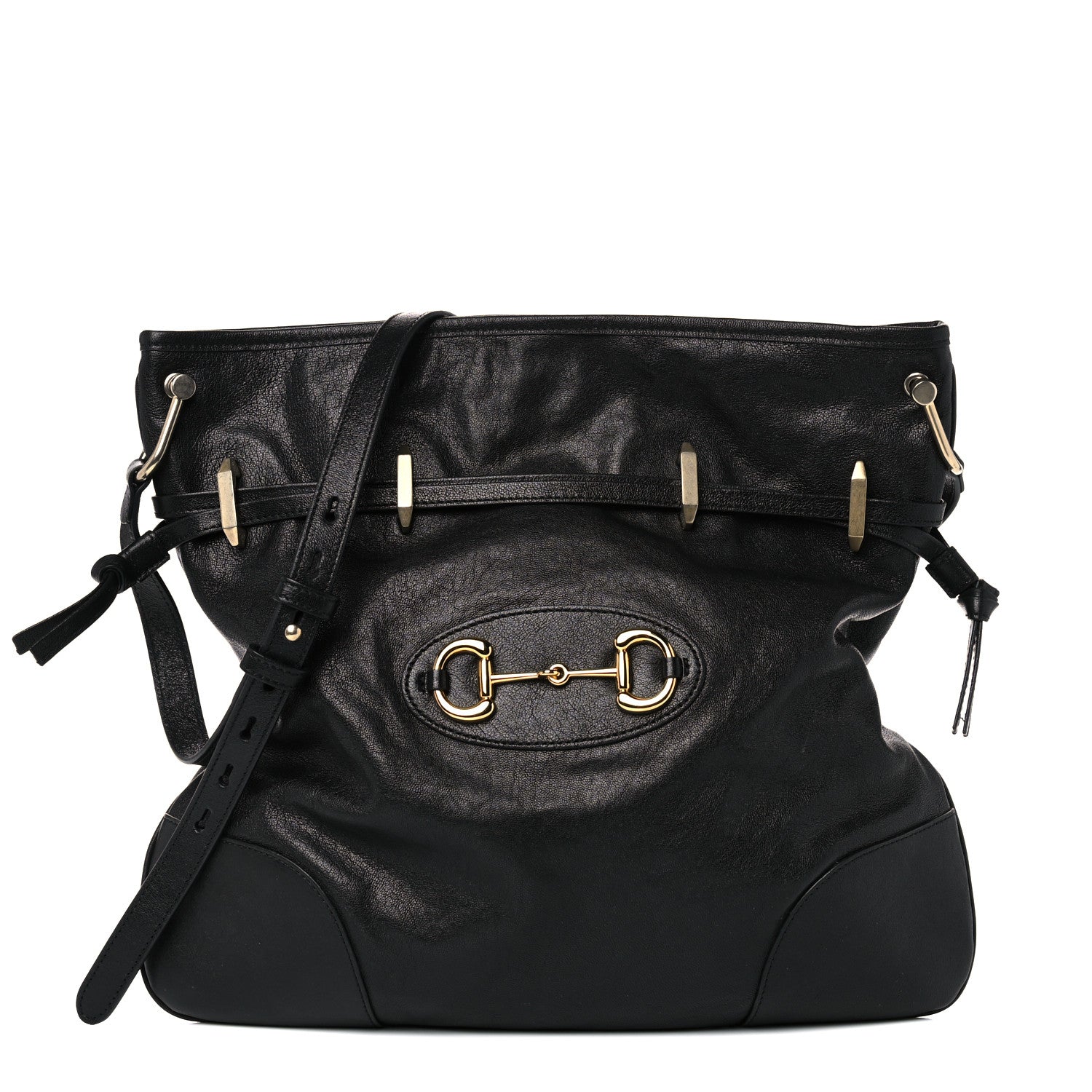 Gucci 1955 Morsetto Leather Horsebit Drawstring Black Bucket Bag 602089