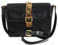 Gucci 1969 Sylvie navy leather shoulder bag with a gold zipper accent