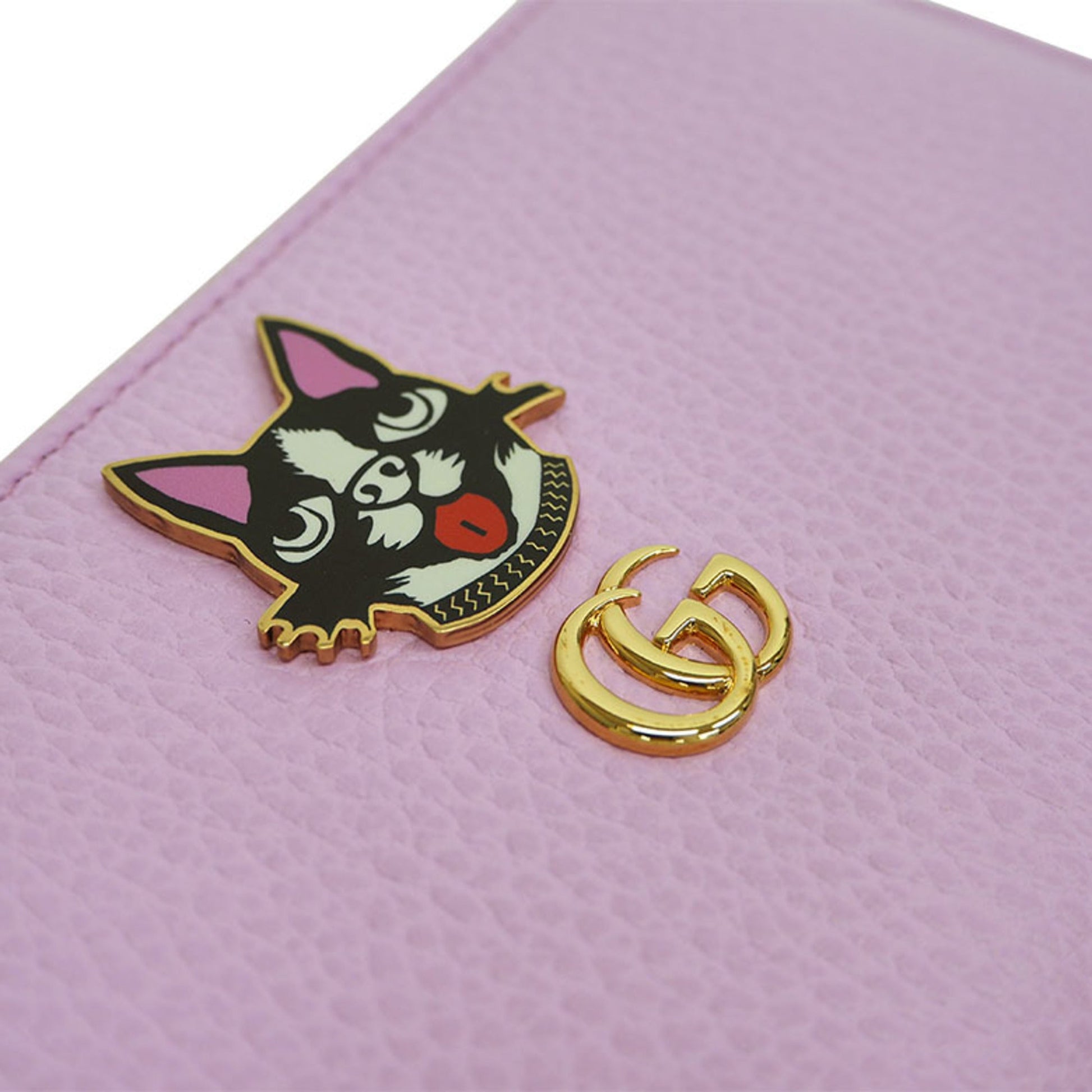 Gucci 499337 GG Marmont Bosco Zip Around Wallet Round Purse Light Pink Dog Boston Terrier
