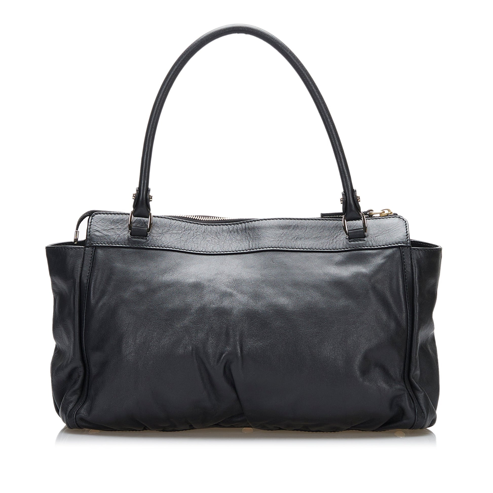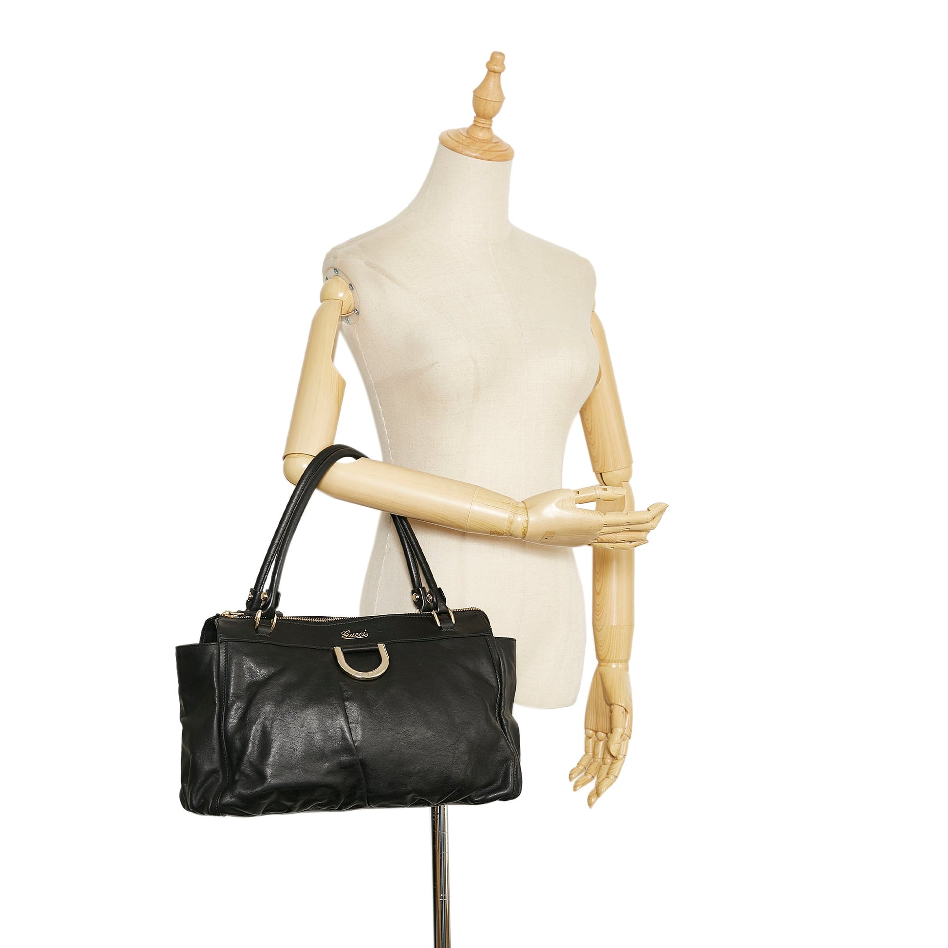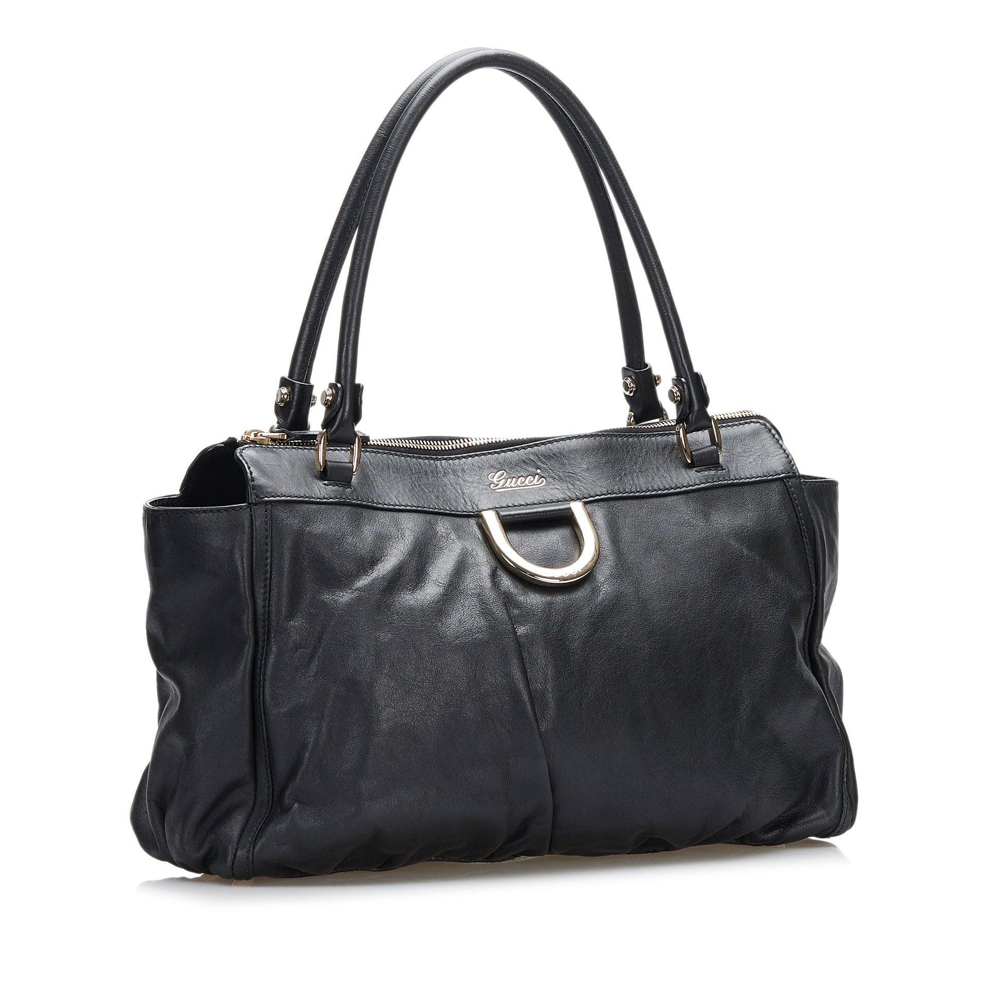 The Abbey D-Ring shoulder bag features a leather body, rolled leather handles, a top zip closure, and an interior zip pocket.