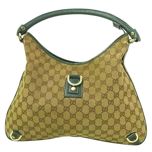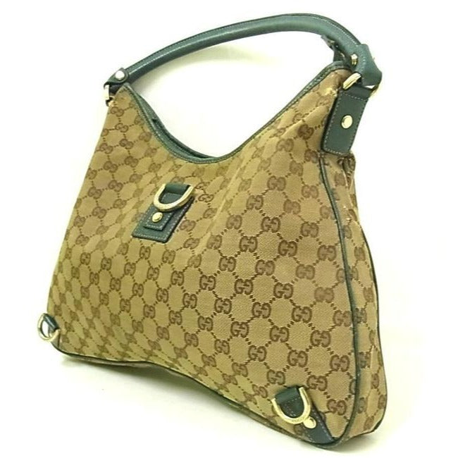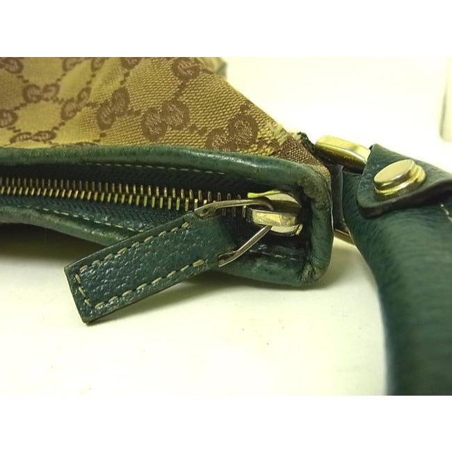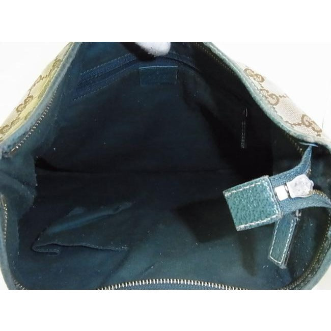 Gucci Abbey Vintage Brown Large G Logo Print Canvas And Teal Green Leather