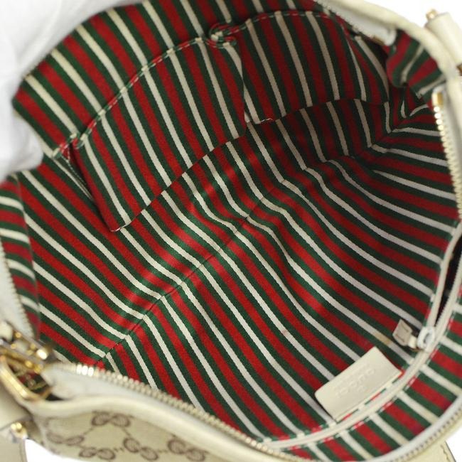 Gucci Abbey Vintage Brown Large G Logo Print Canvas And White Leather