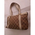 Gucci Abbey Vintage Brown Large Logo Print Canvas And White Leather
