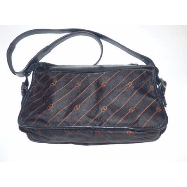 * For sale is a Gucci, RARE, black with orange diagonal G logo print canvas fabric & black leather, shoulder bag with exterior pocket! It is a rare style in a hard to find print that would be great used as a signature purse or as your everyday purse!
