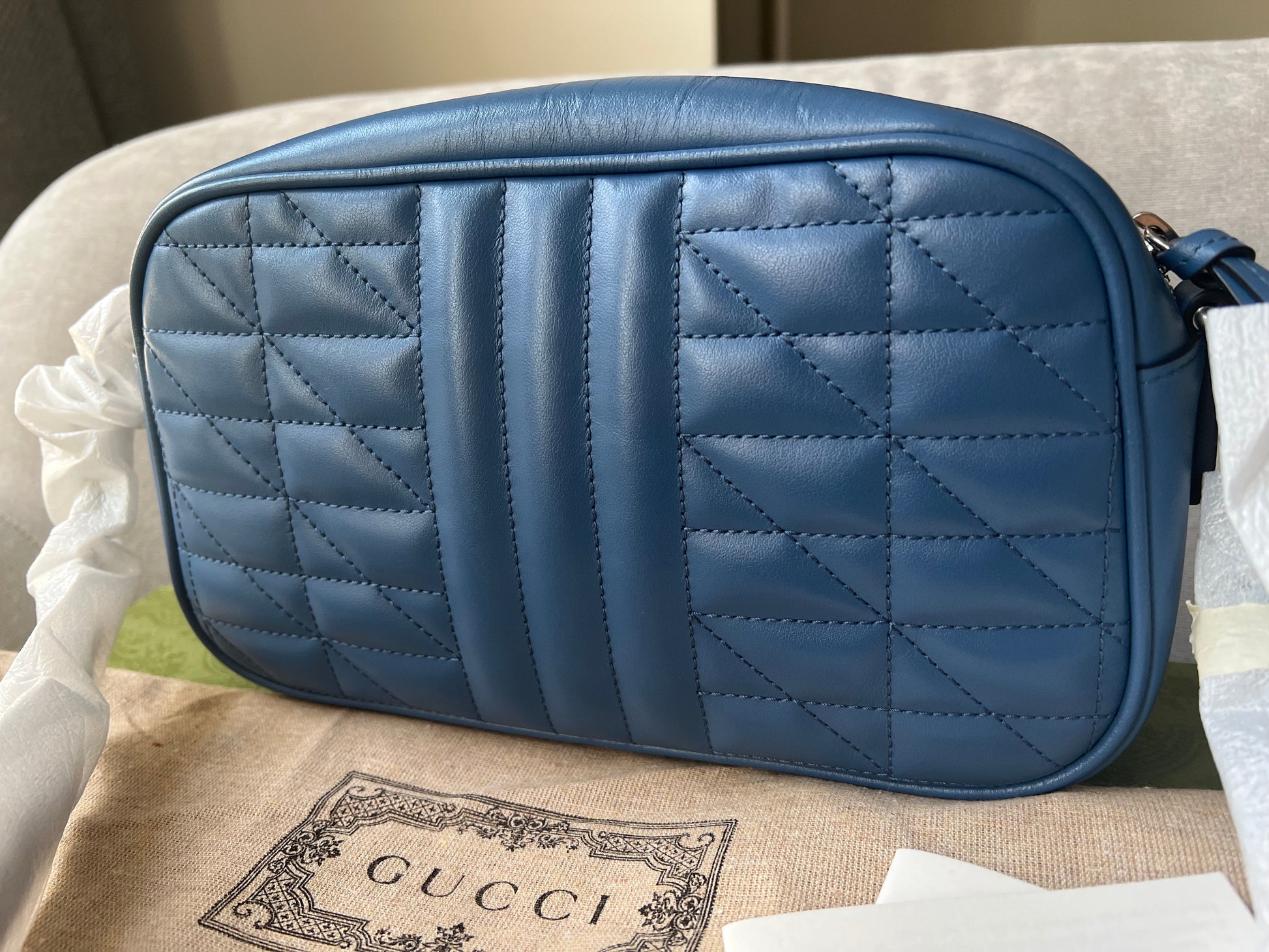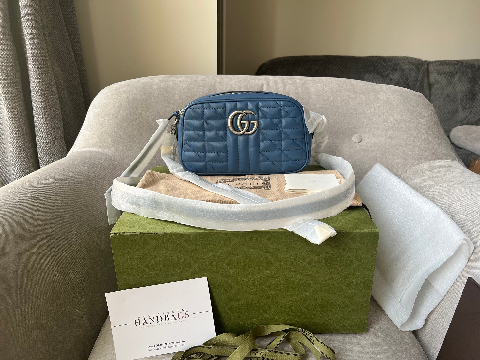 Gucci Aria GG Blue Marmont Small Shoulder Bag (RRP £1250)