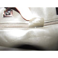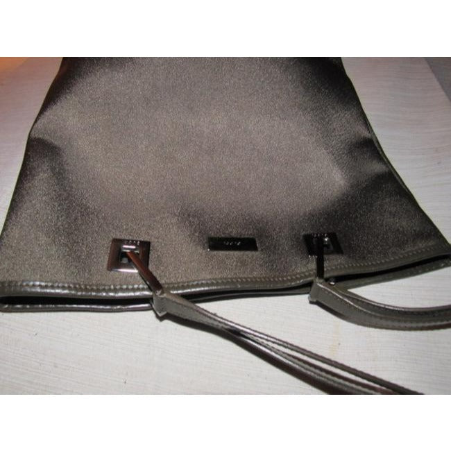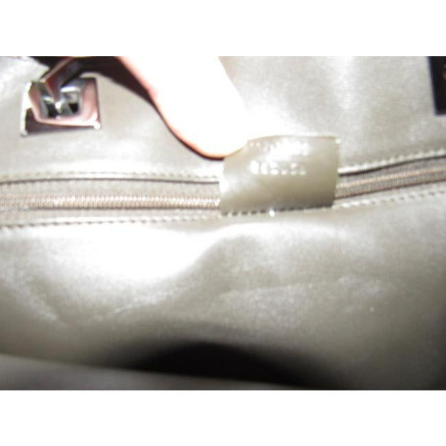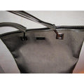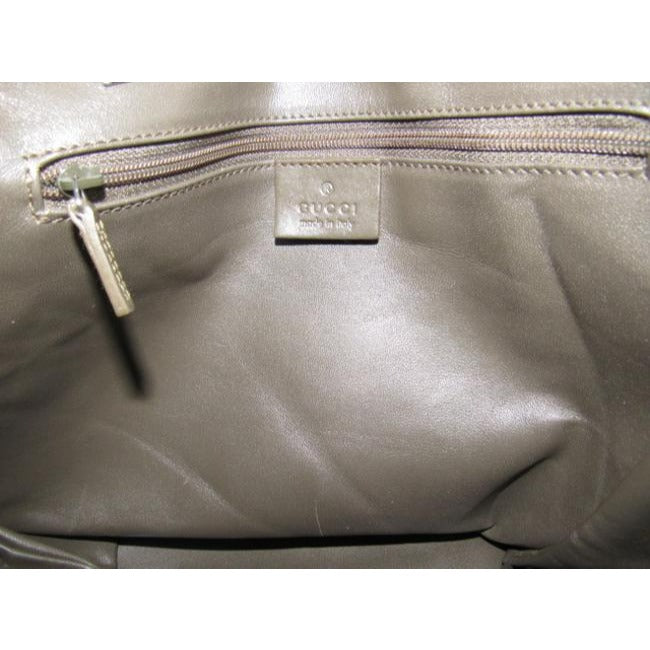 It has an open top with two handles, a brown leather, bottom, straps, and top edges. There is an interior zip pocket. The interior is in excellent overall condition with a matching fabric lining that is very clean and made of leather or a leather upper but shows no signs of peeing the way so many Gucci linings do!