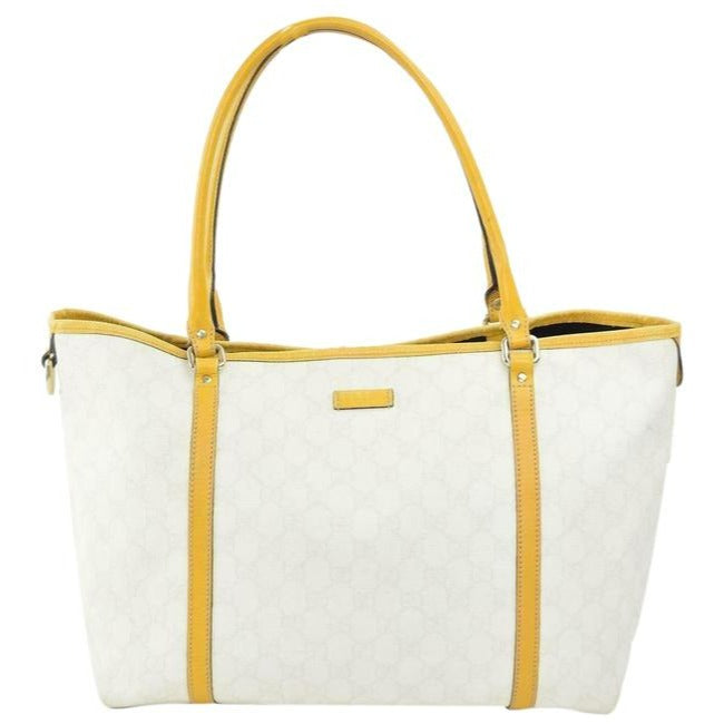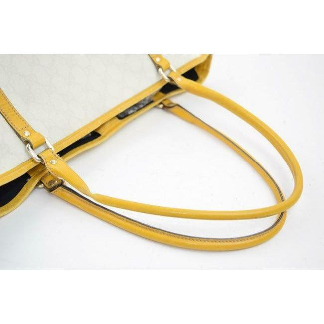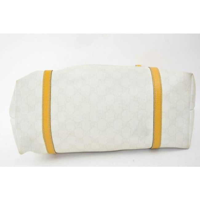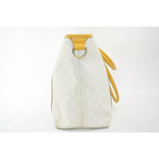 Gucci Bag Web Supreme Brown Large G Logo Print On White Coated Canvas And Yellow Leather Gg Tote