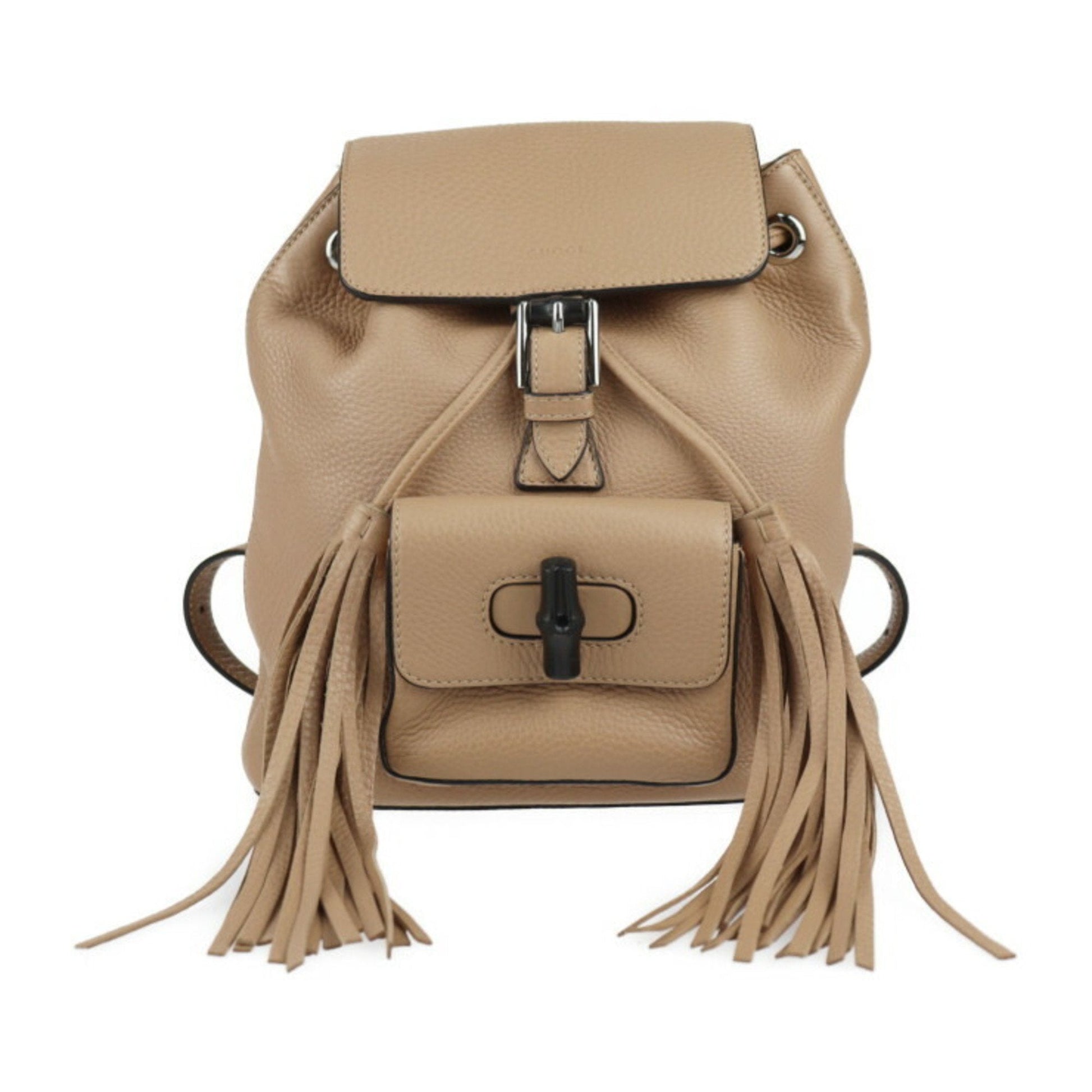 GUCCI Bamboo Backpack/Daypack 387149 Leather Beige Silver Hardware Backpack Tassel