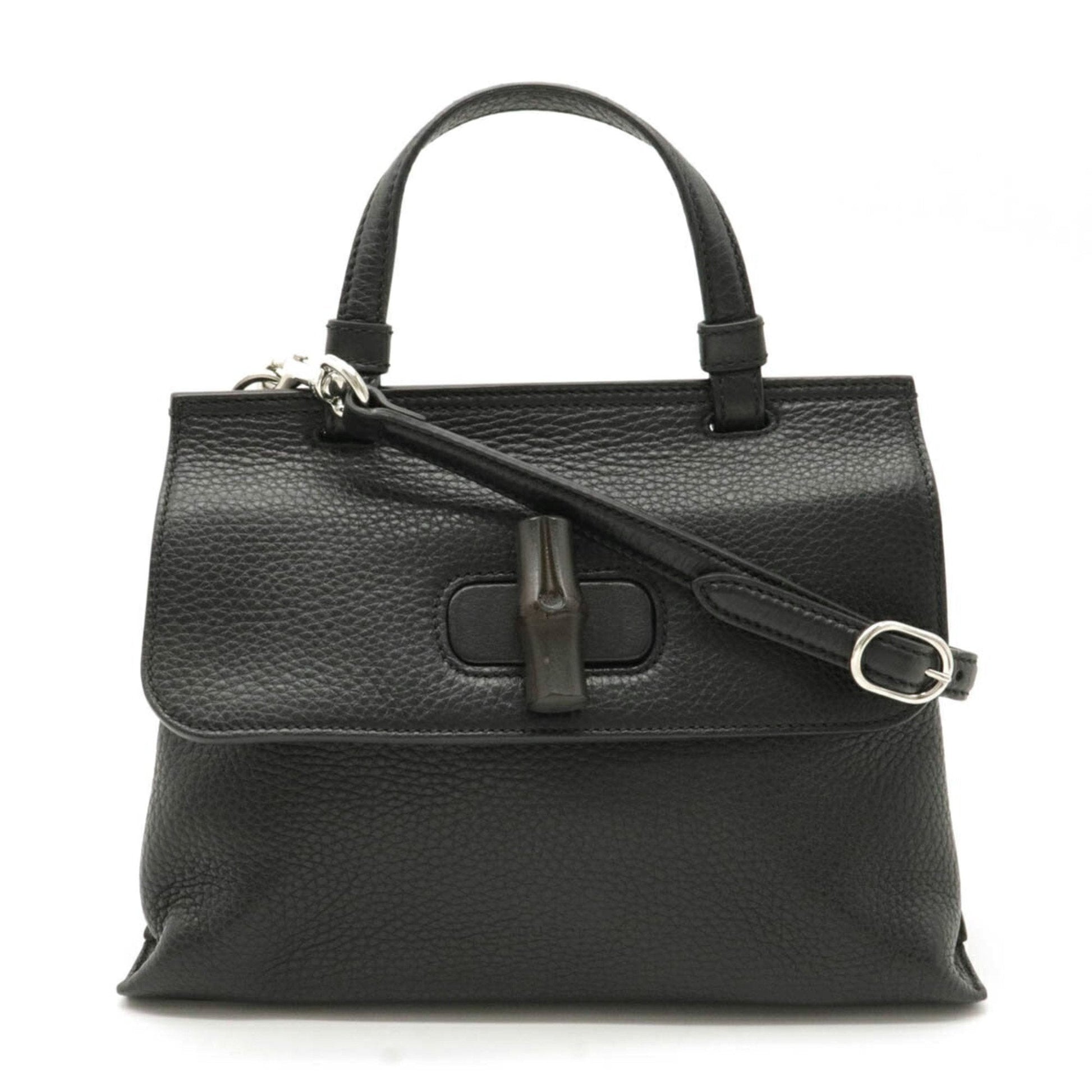 Gucci bamboo daily bag handbag shoulder leather black 370831