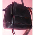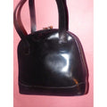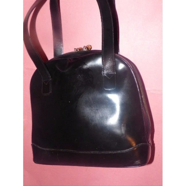 For sale is a vintage, black patent leather, large satchel shape or bowler style, top dual zip, two strap shoulder bag with bamboo accents! It is a unique take on a classic satchel style that would be great used as an everyday purse!