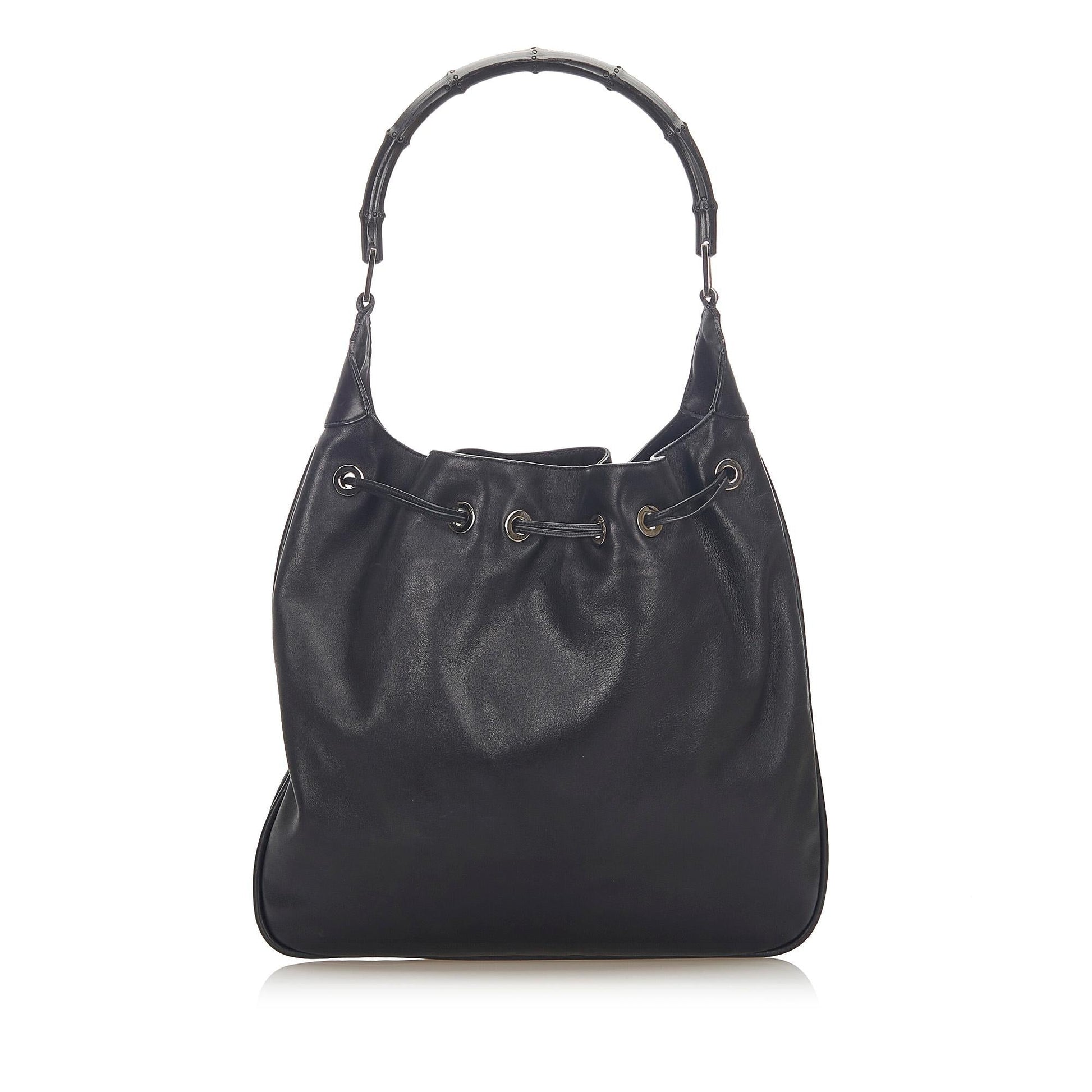Gucci Bamboo Drawstring Leather Shoulder Bag