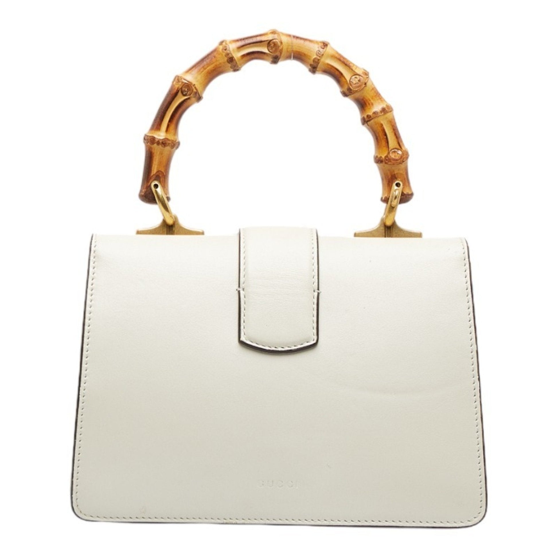 GUCCI Bamboo Duonissos Handbag Shoulder Bag White Multicolor Leather Women's