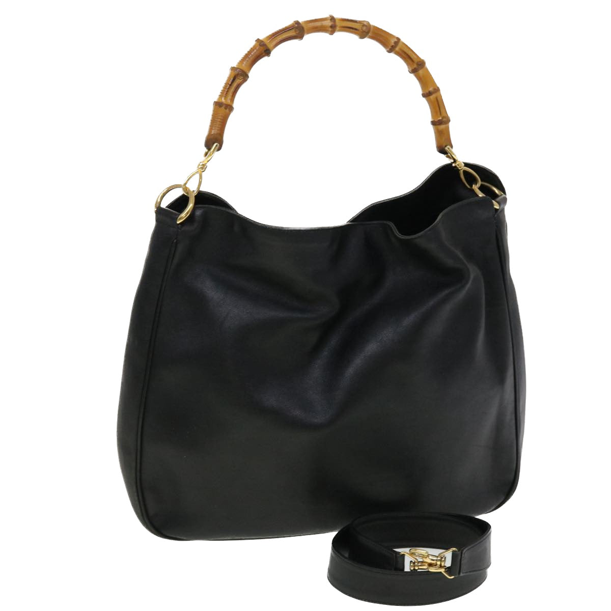 GUCCI Bamboo Hand Bag Leather 2way Black 001.0166.1577 ar9614