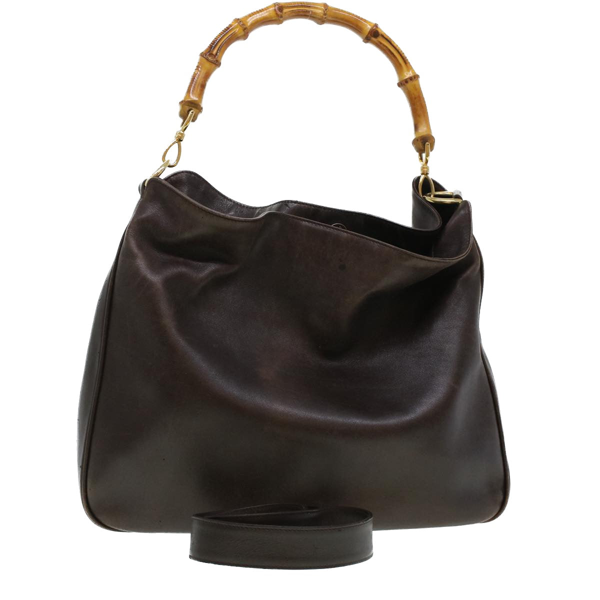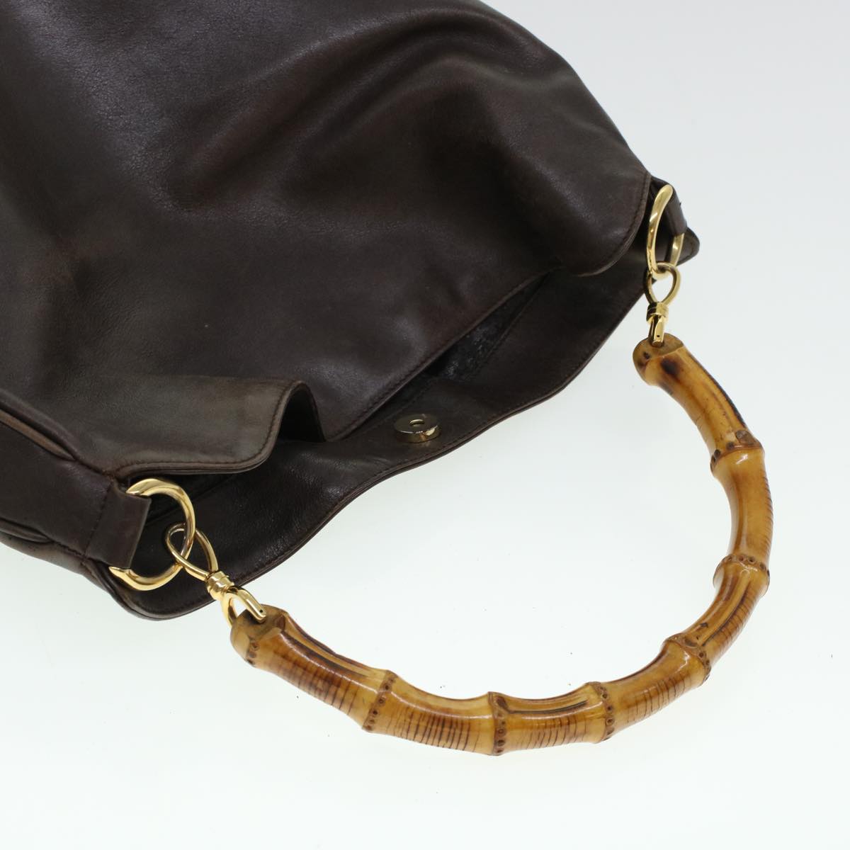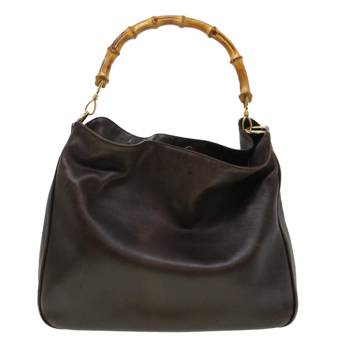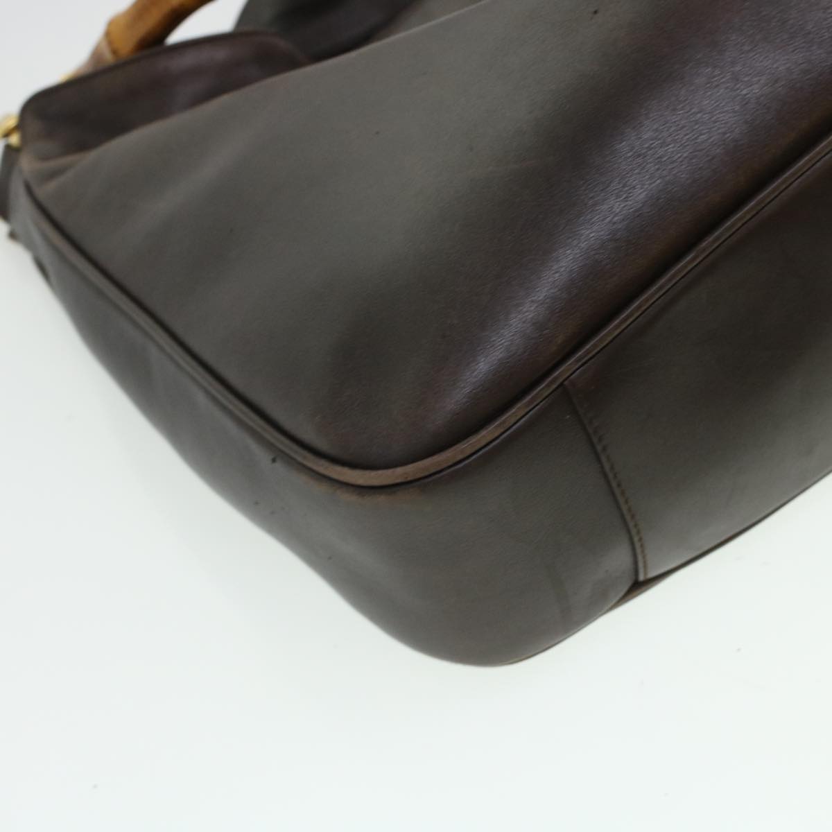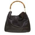 GUCCI Bamboo Hand Bag Leather 2way Brown 0011577 bs5919