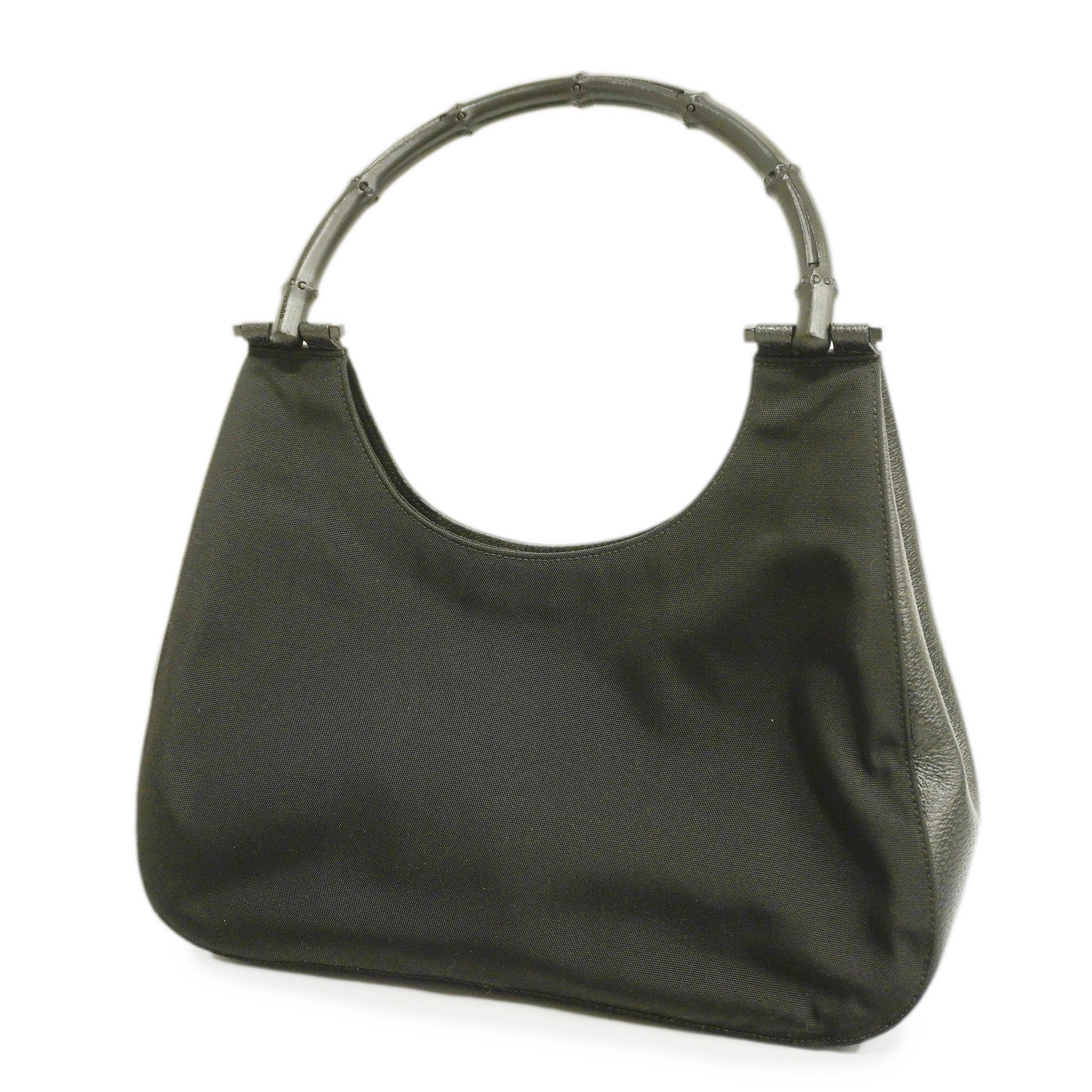Gucci Bamboo Handbag 001 3739 Women's Nylon,Leather Handbag Black