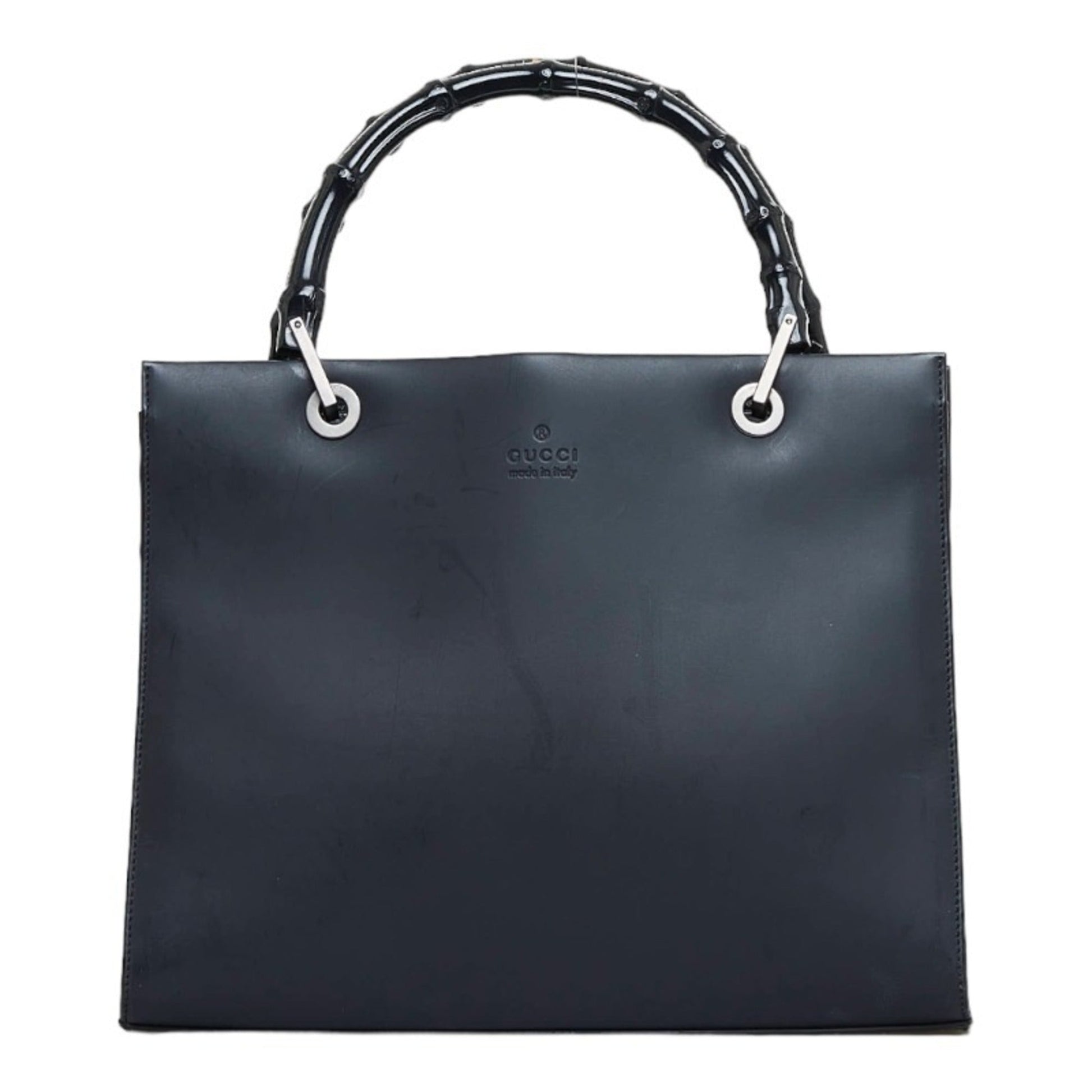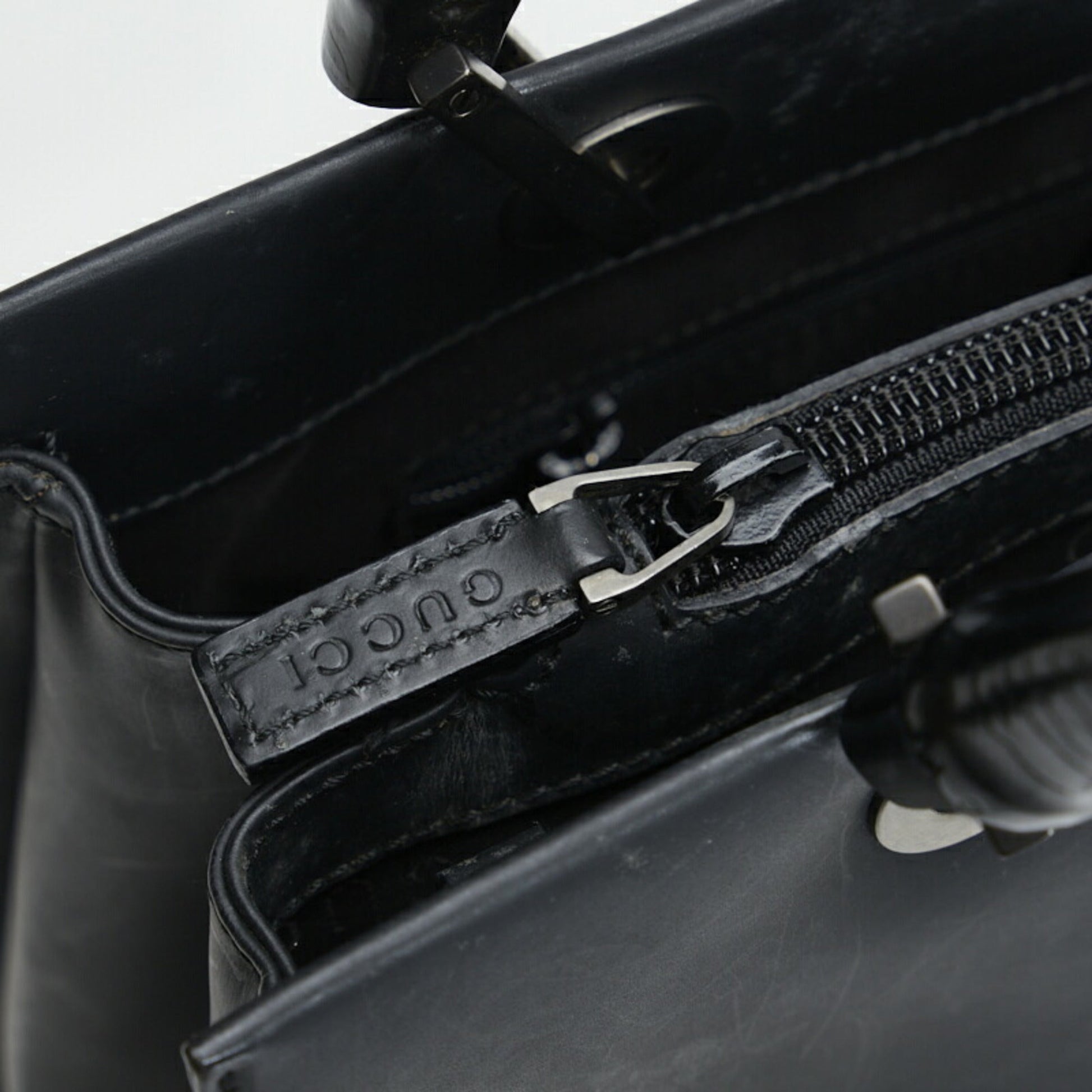 GUCCI Bamboo Handbag Tote Bag 0021016 Black Leather Ladies