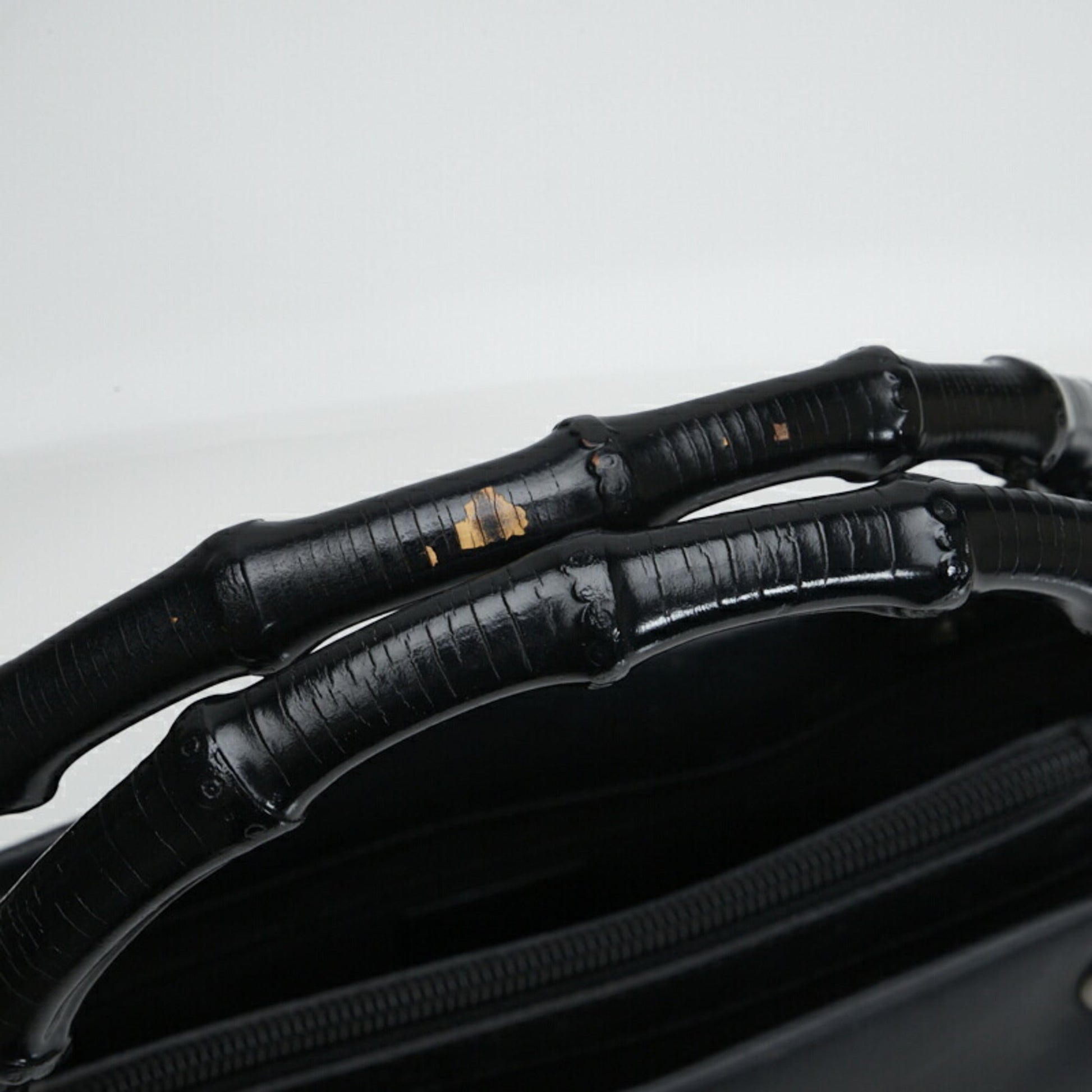 Gucci Bamboo Handbag Tote Bag 0021016 Black Leather Ladies GUCCI