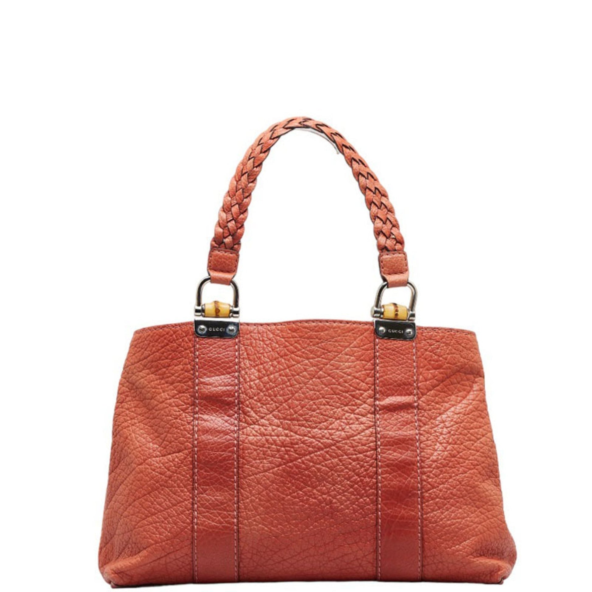 GUCCI bamboo handle handbag tote bag 232947 orange leather ladies