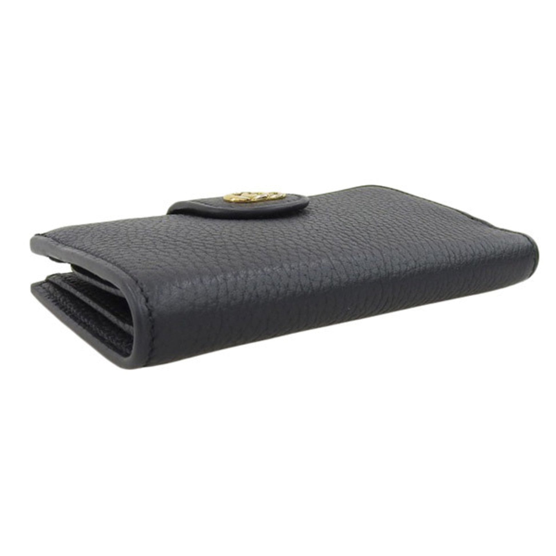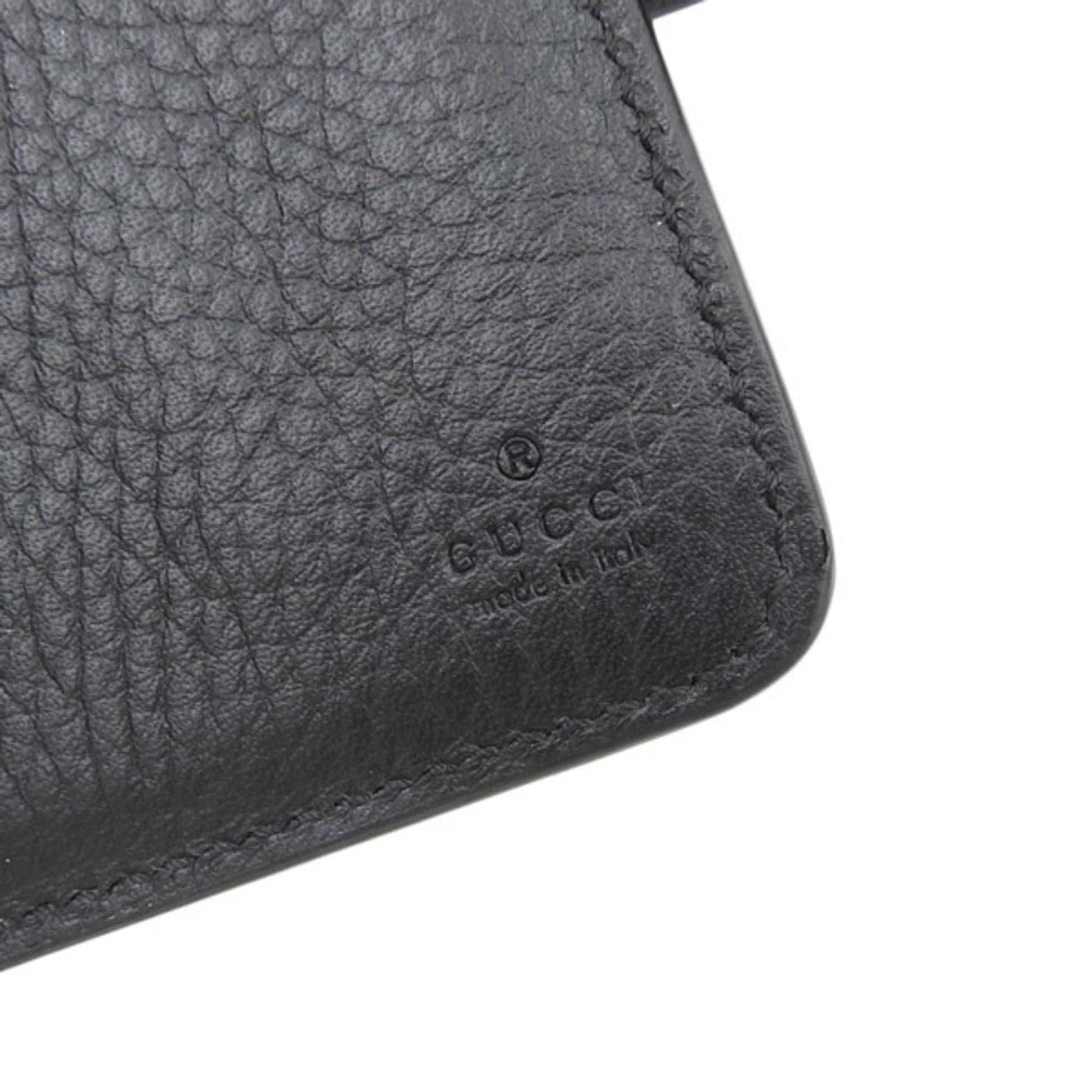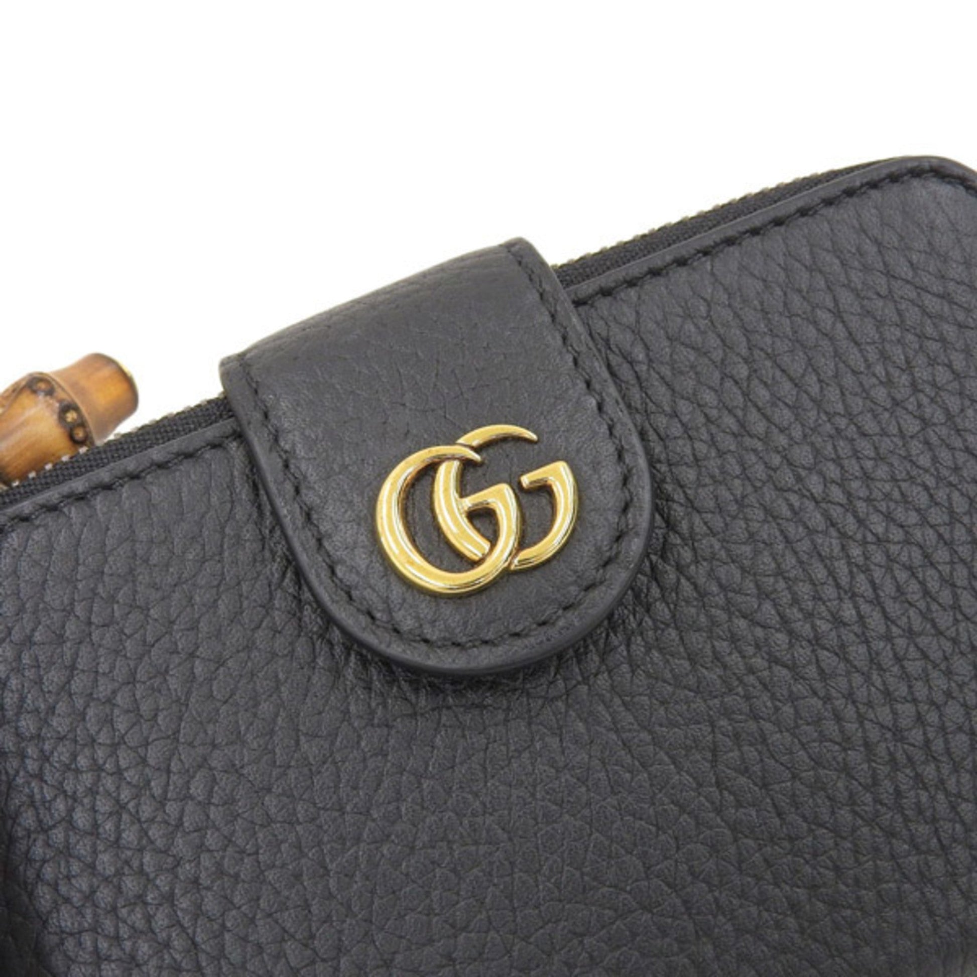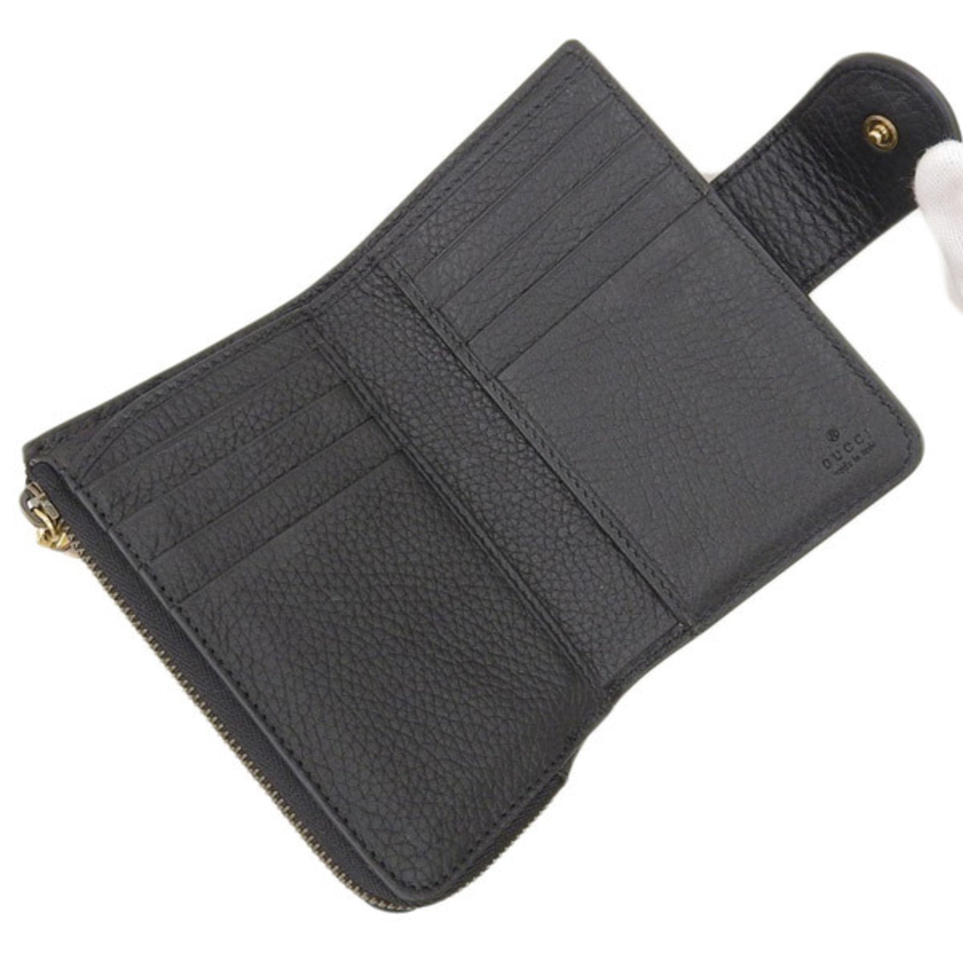 Gucci Bamboo Leather Double G Medium L-shaped Bifold Wallet 739498 Black Women's