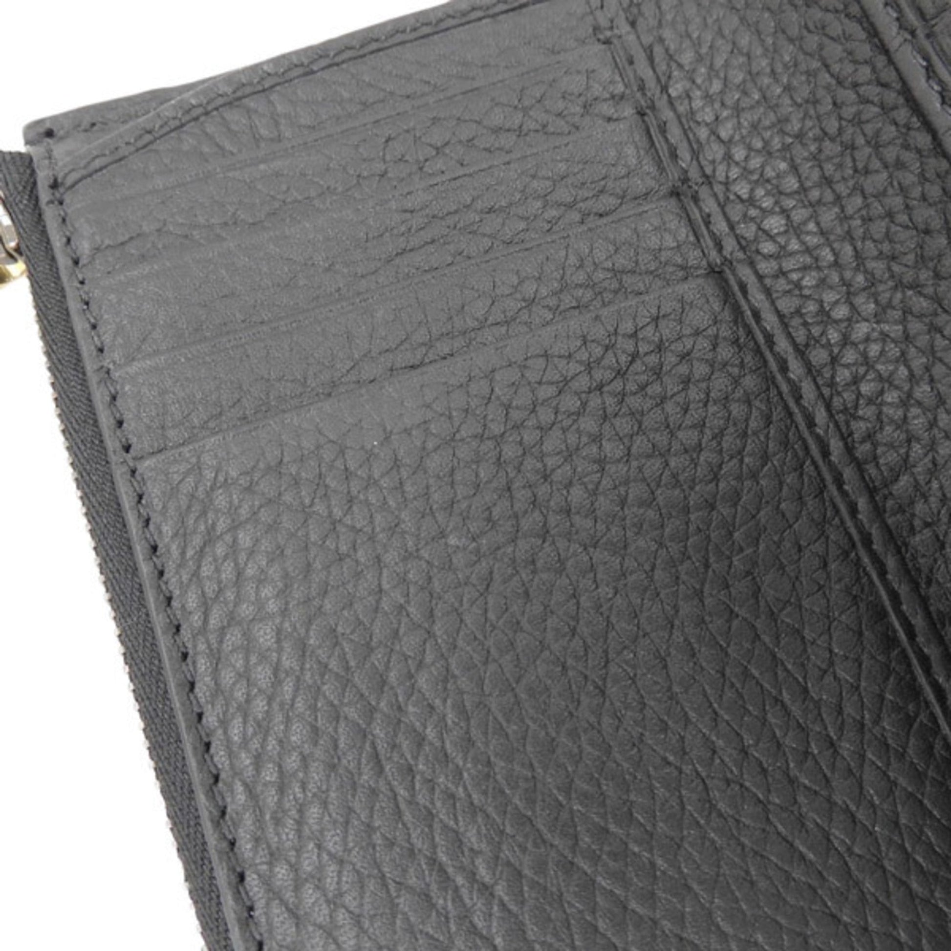 GUCCI Bamboo Leather Double G Medium L-shaped Bifold Wallet 739498 Black Women's