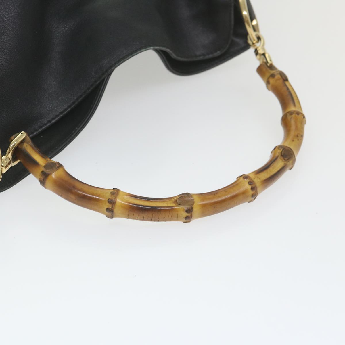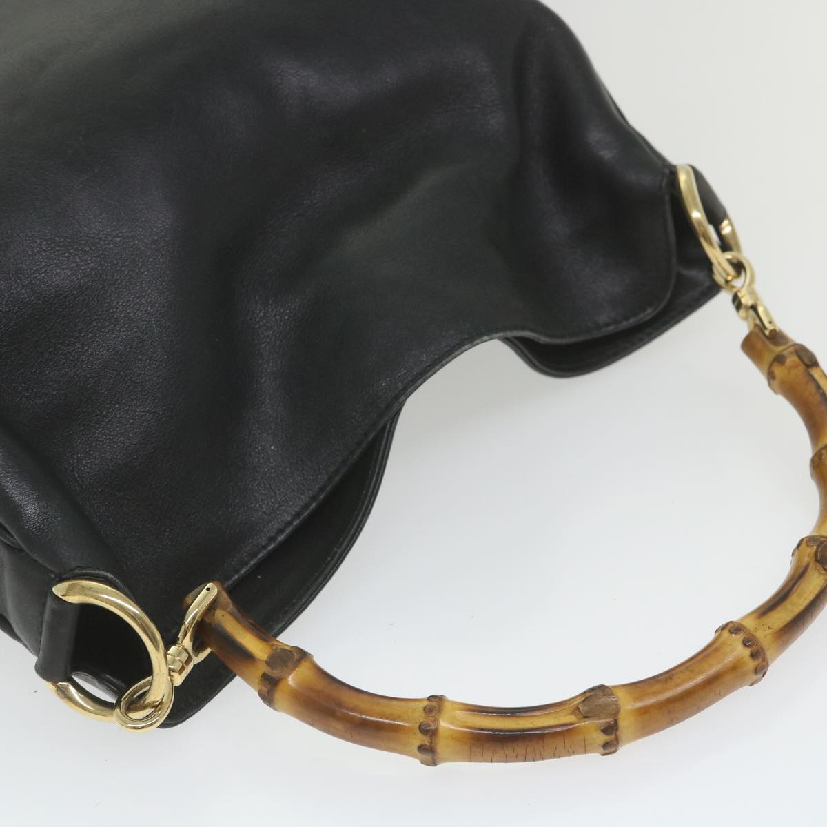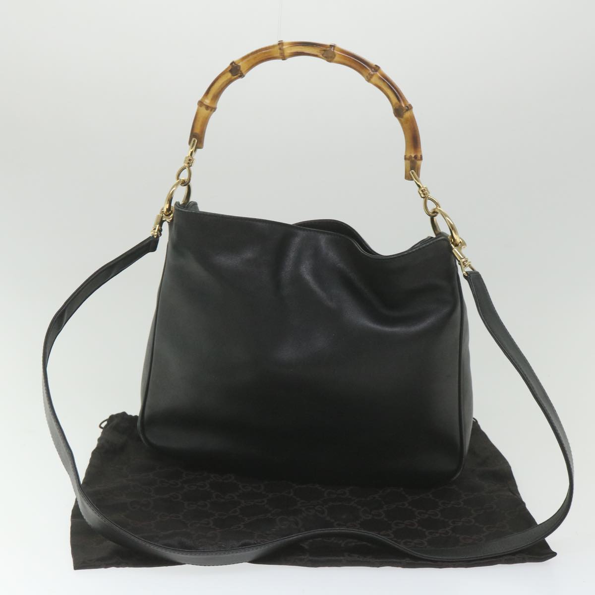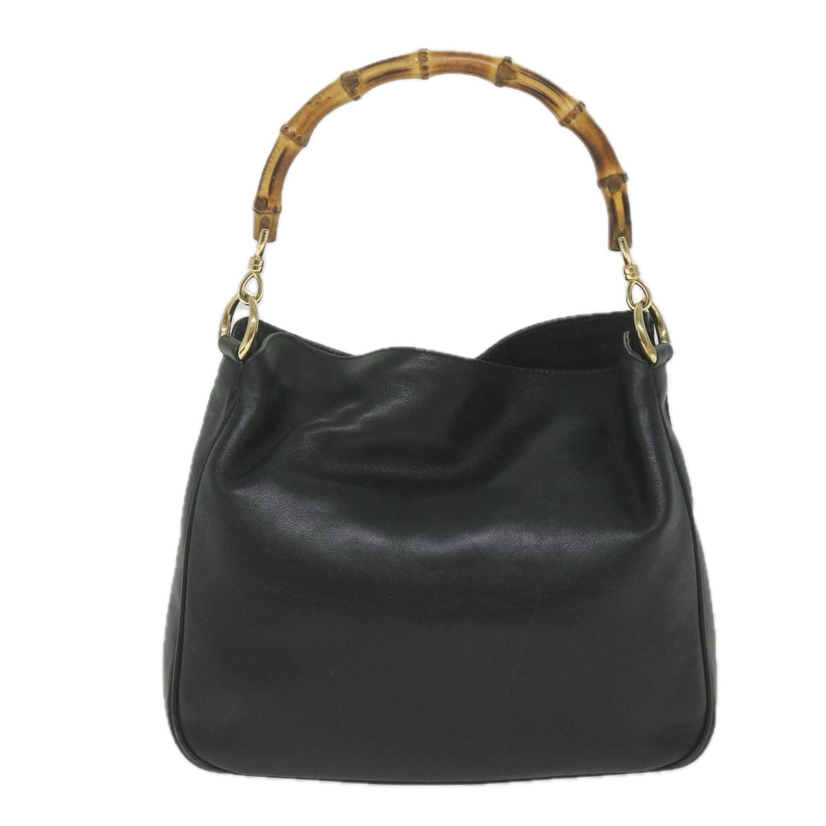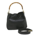 GUCCI Bamboo Shoulder Bag Leather 2way Black 001 1638 Auth bs9938