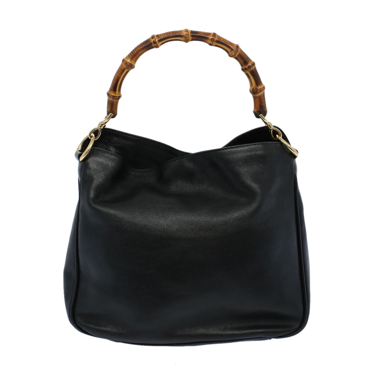 GUCCI Bamboo Shoulder Bag Leather 2way Black 001 2123 1633 Auth bs9068
