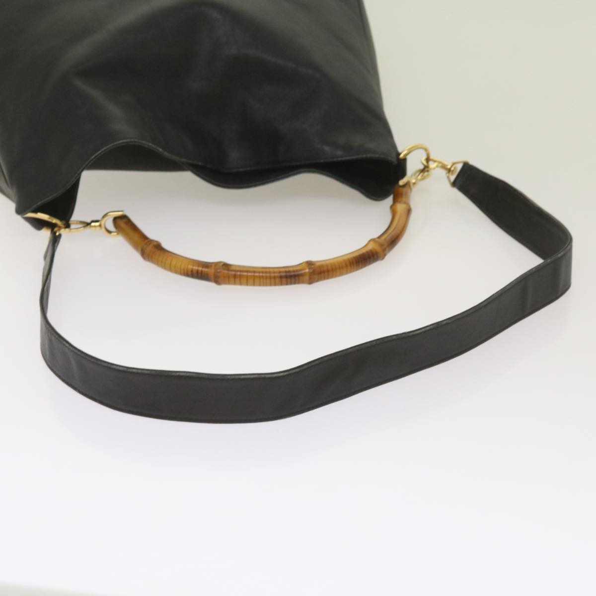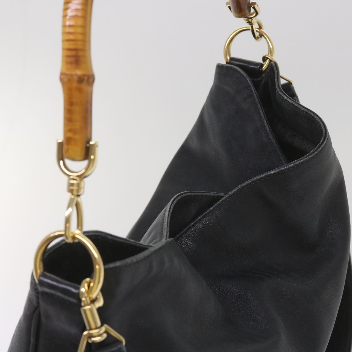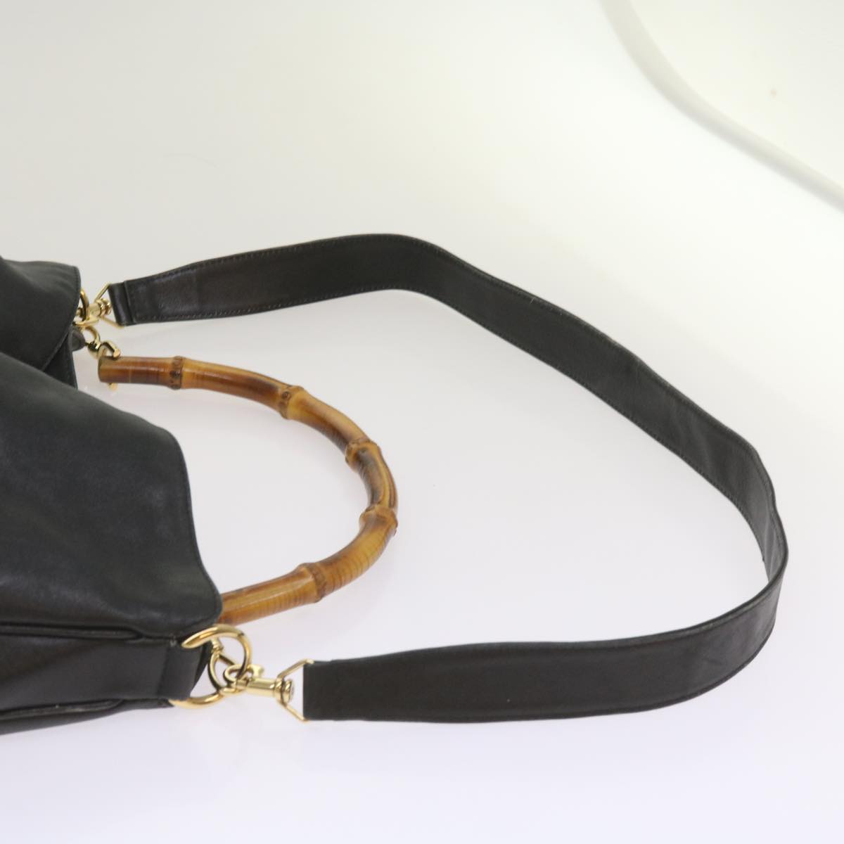 GUCCI Bamboo Shoulder Bag Leather 2way Black 001 2404 1577 Auth 66618