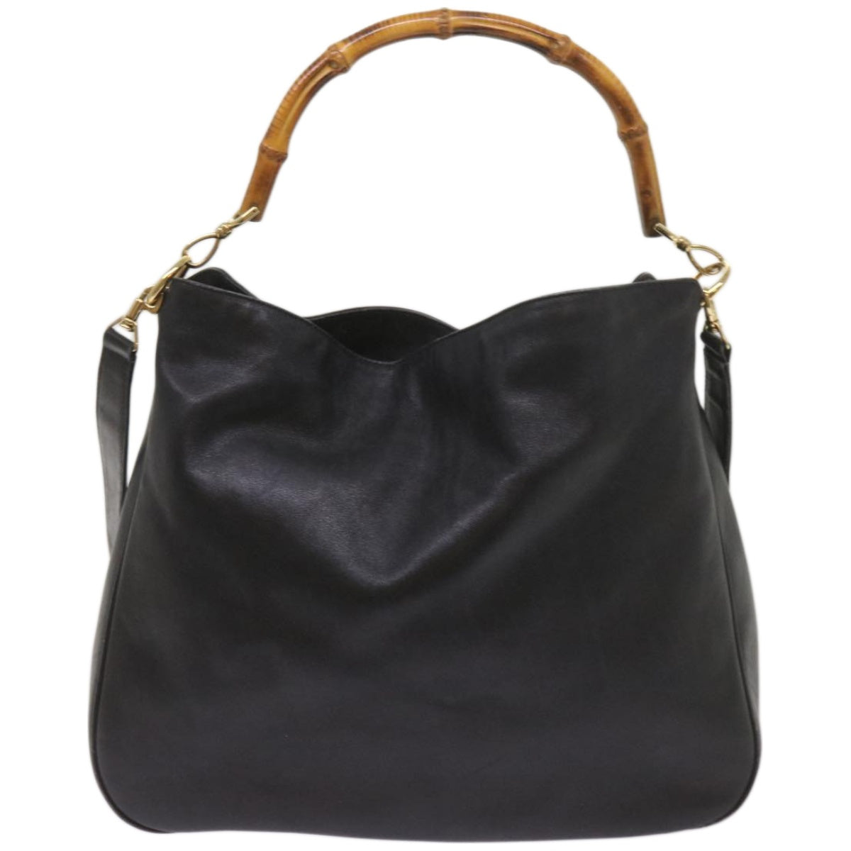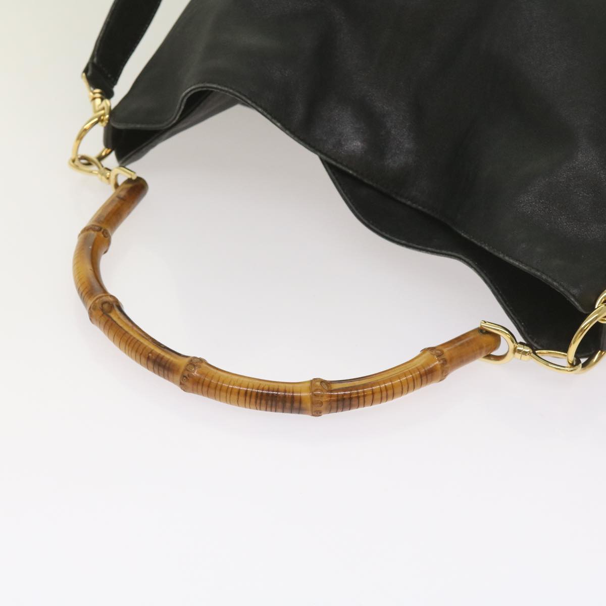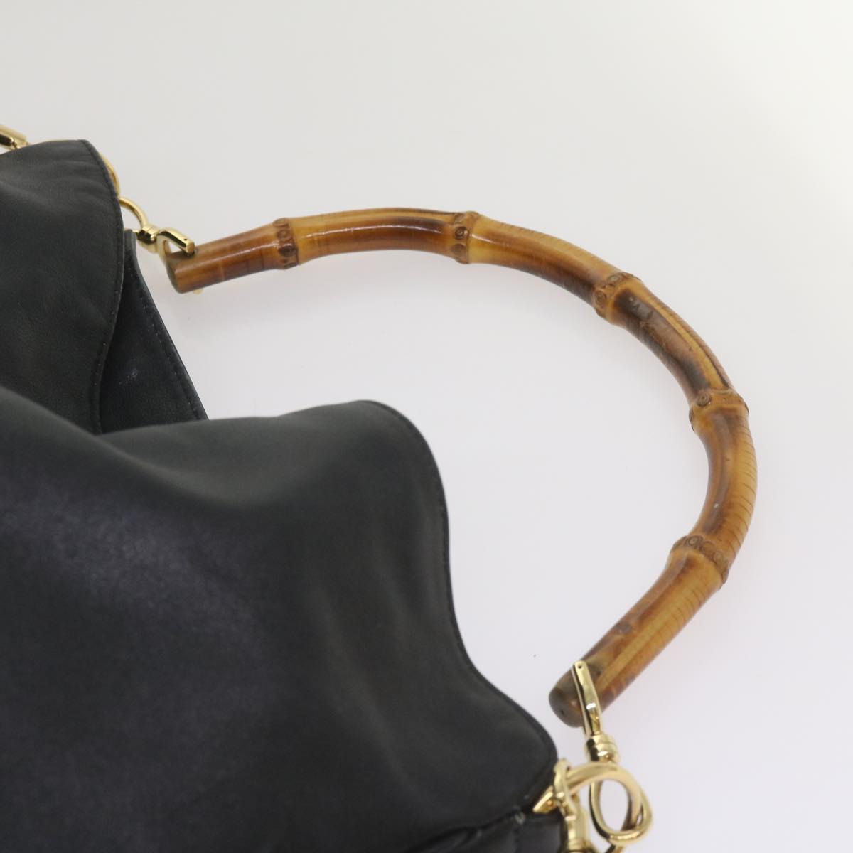 GUCCI Bamboo Shoulder Bag Leather 2way Black 001 2404 1577 Auth 66618