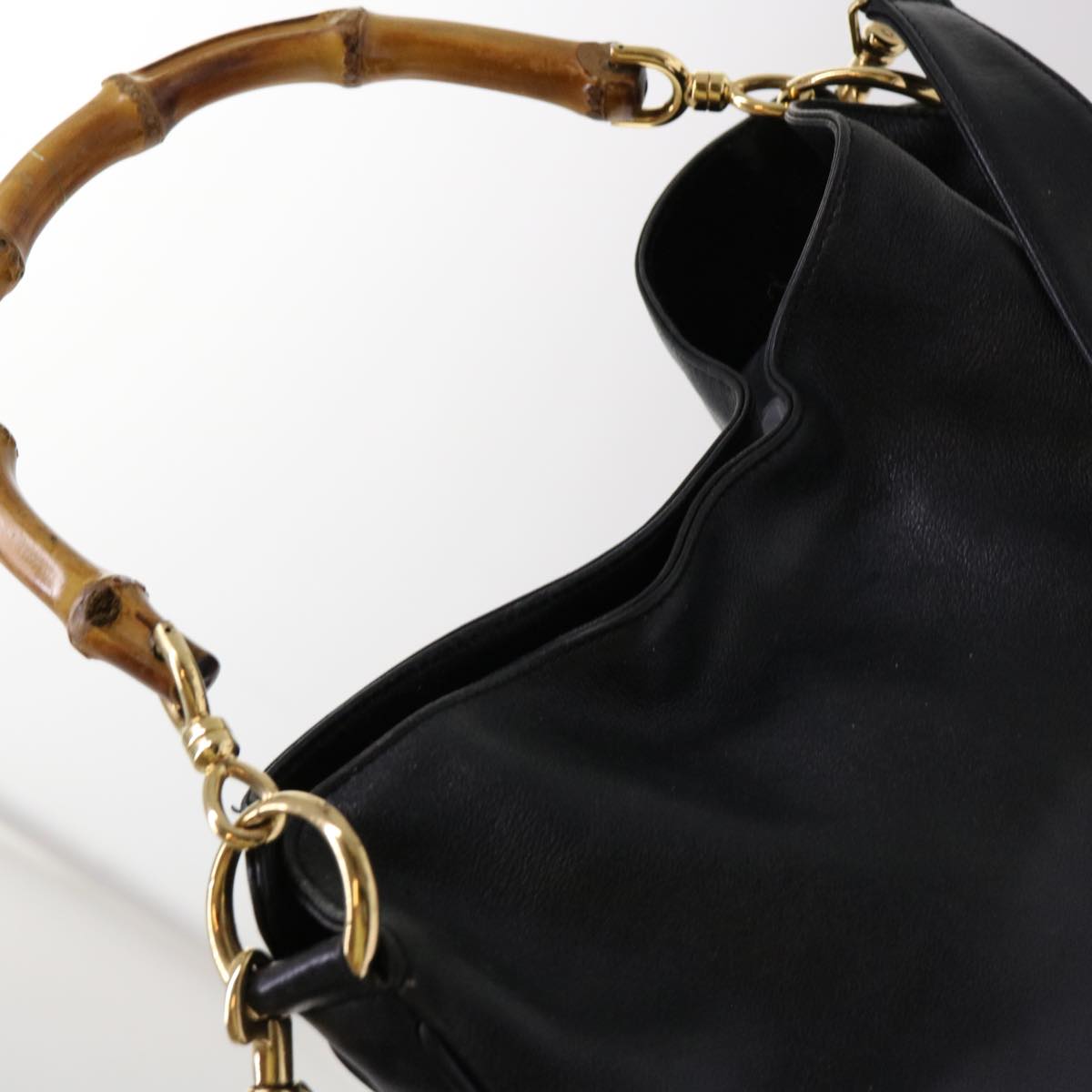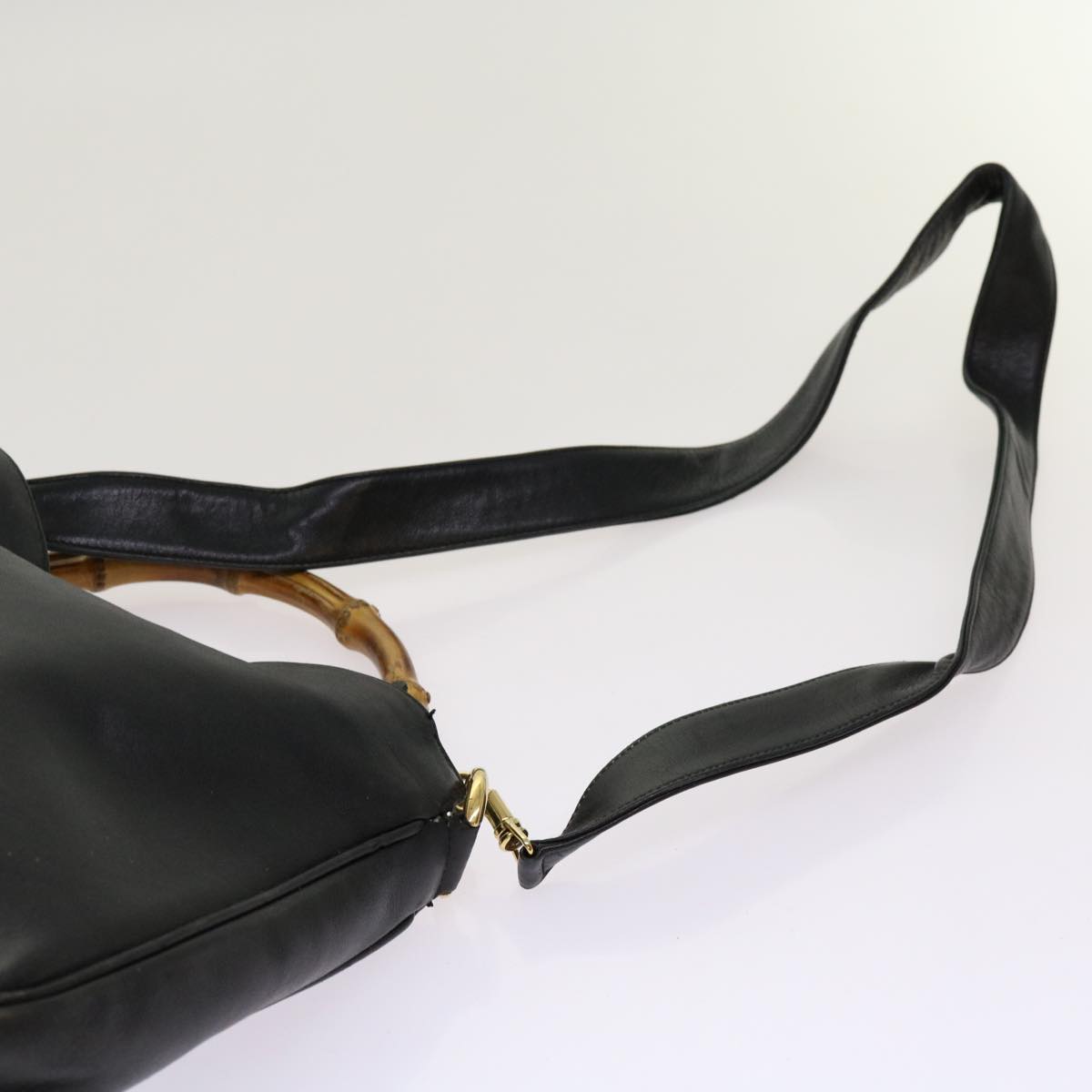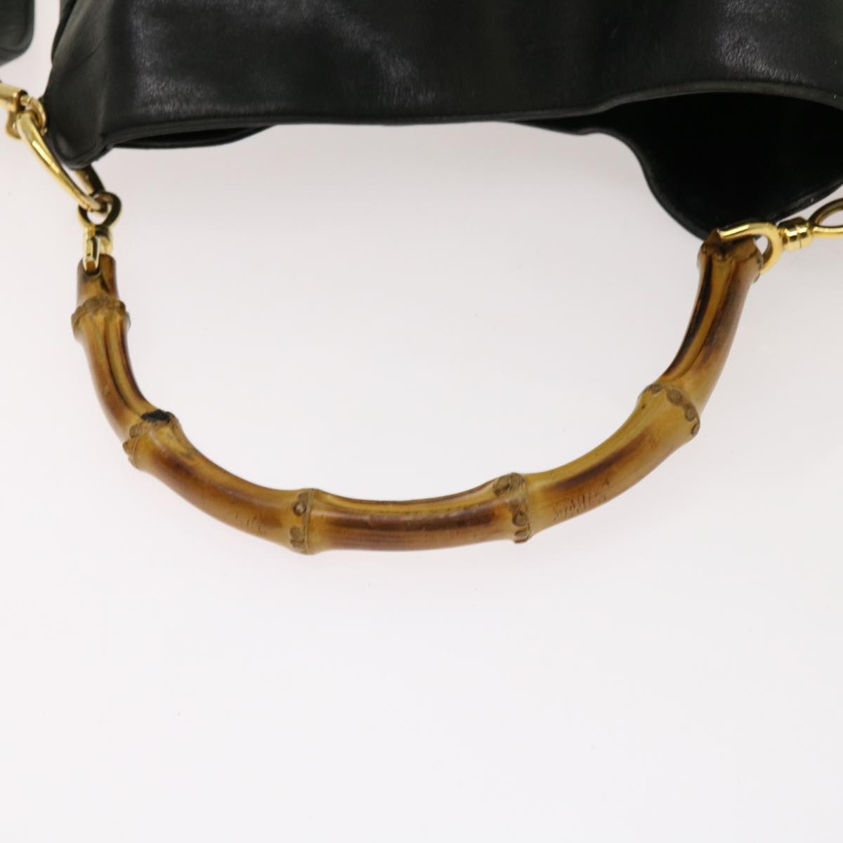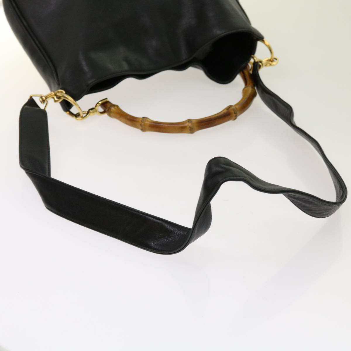 GUCCI Bamboo Shoulder Bag Leather 2way Black Auth 69380