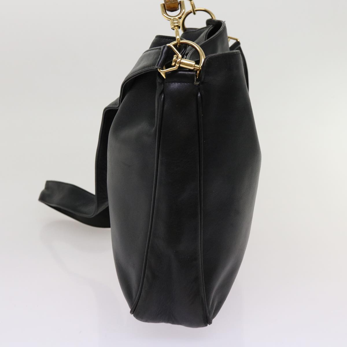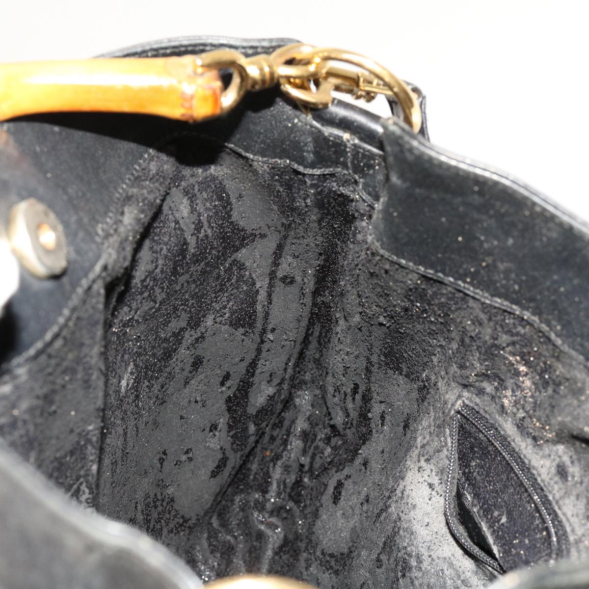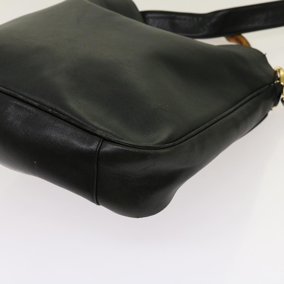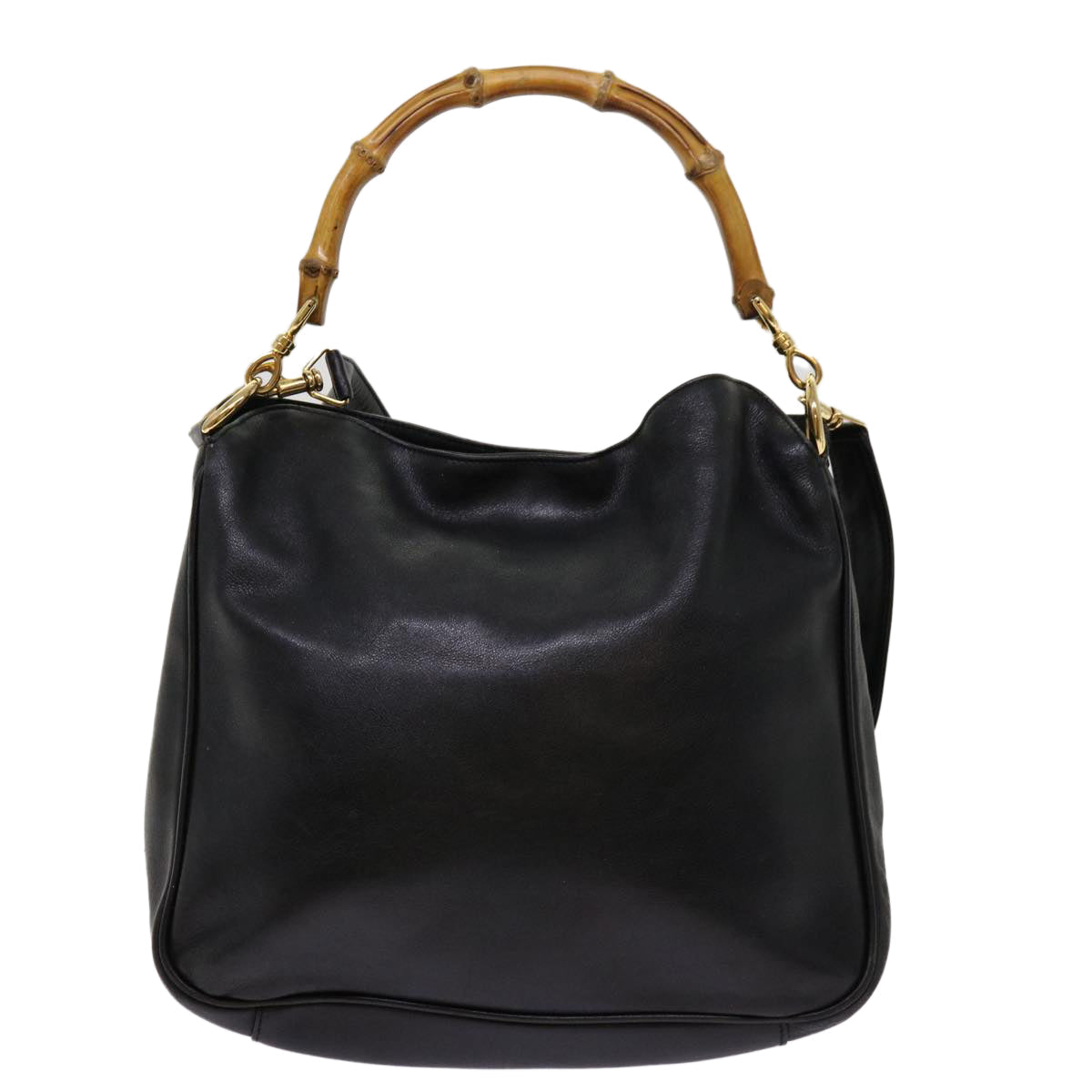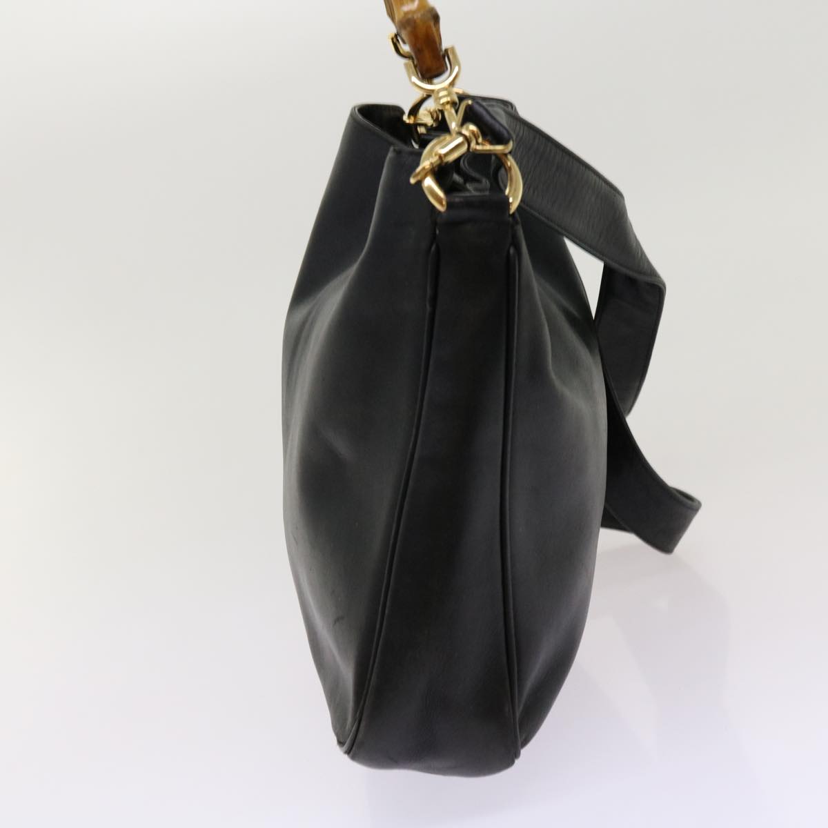 GUCCI Bamboo Shoulder Bag Leather 2way Black Auth 69380