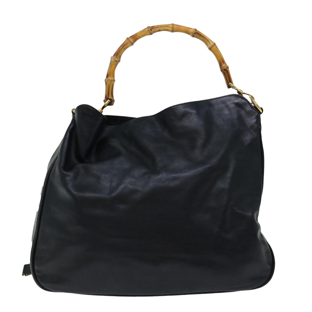 GUCCI Bamboo Shoulder Bag Leather 2way Black Auth 70241
