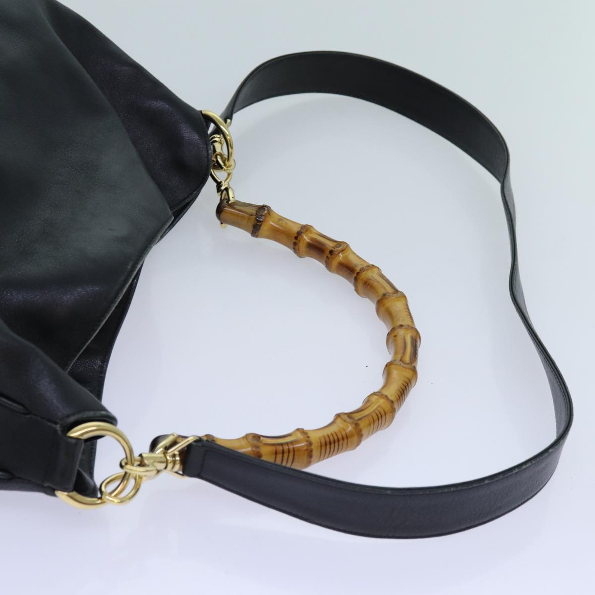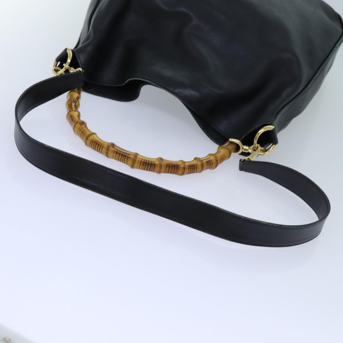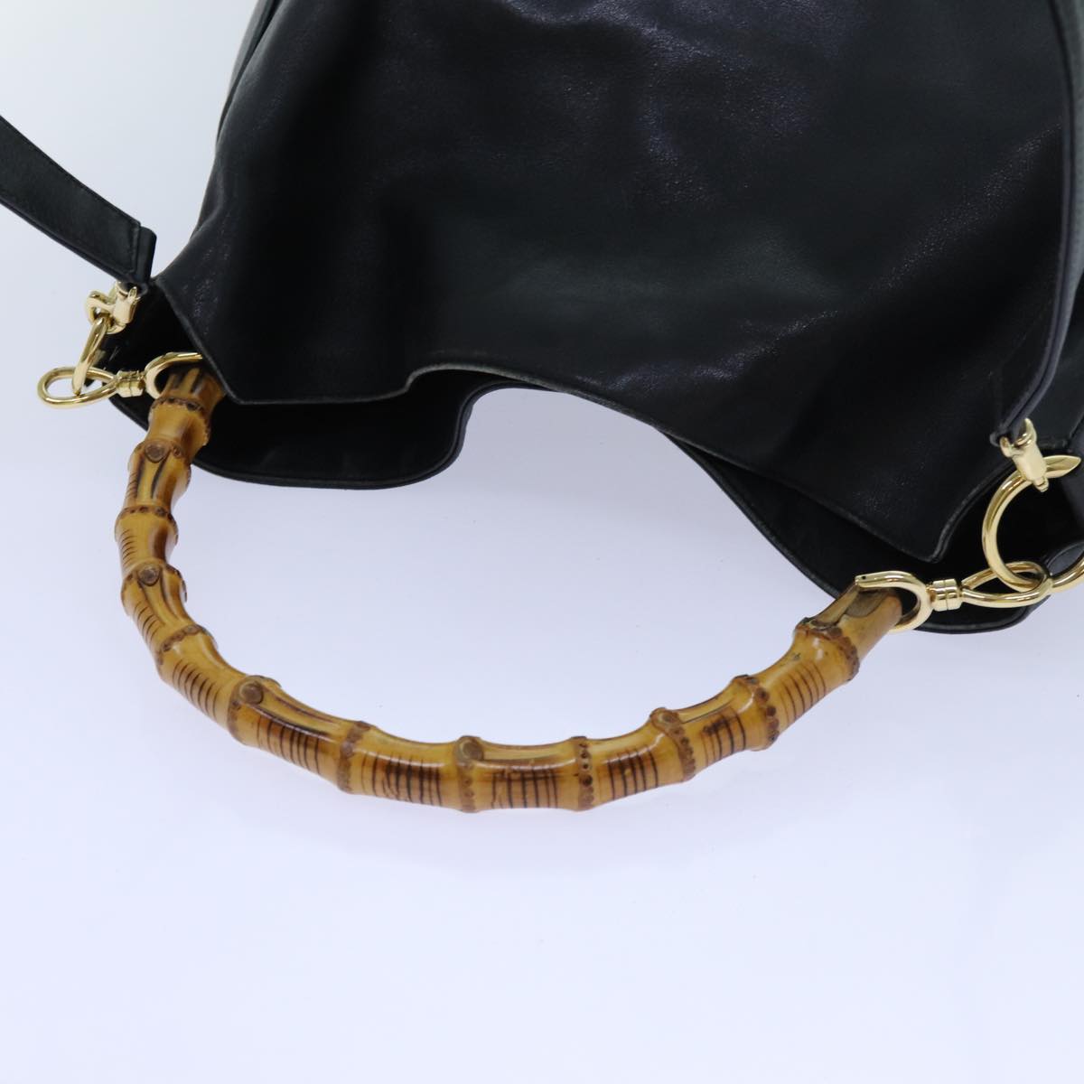 GUCCI Bamboo Shoulder Bag Leather 2way Black Auth 71317