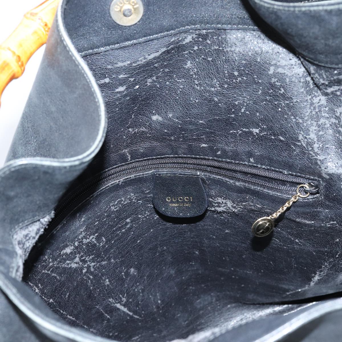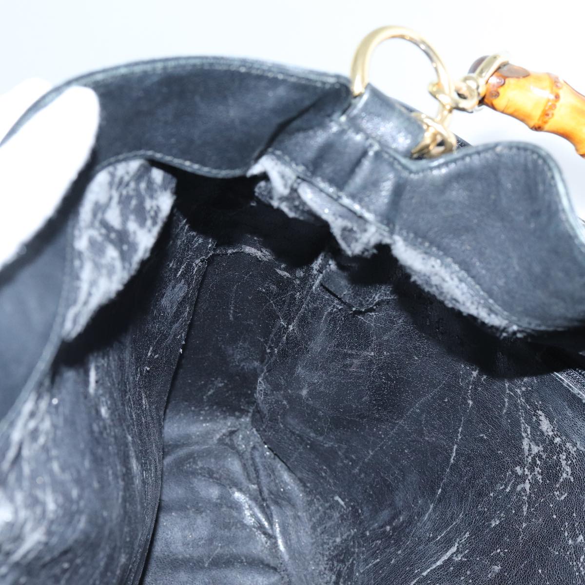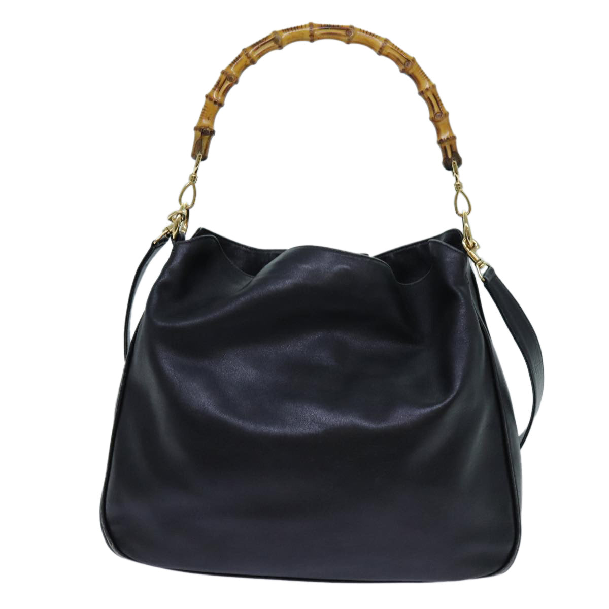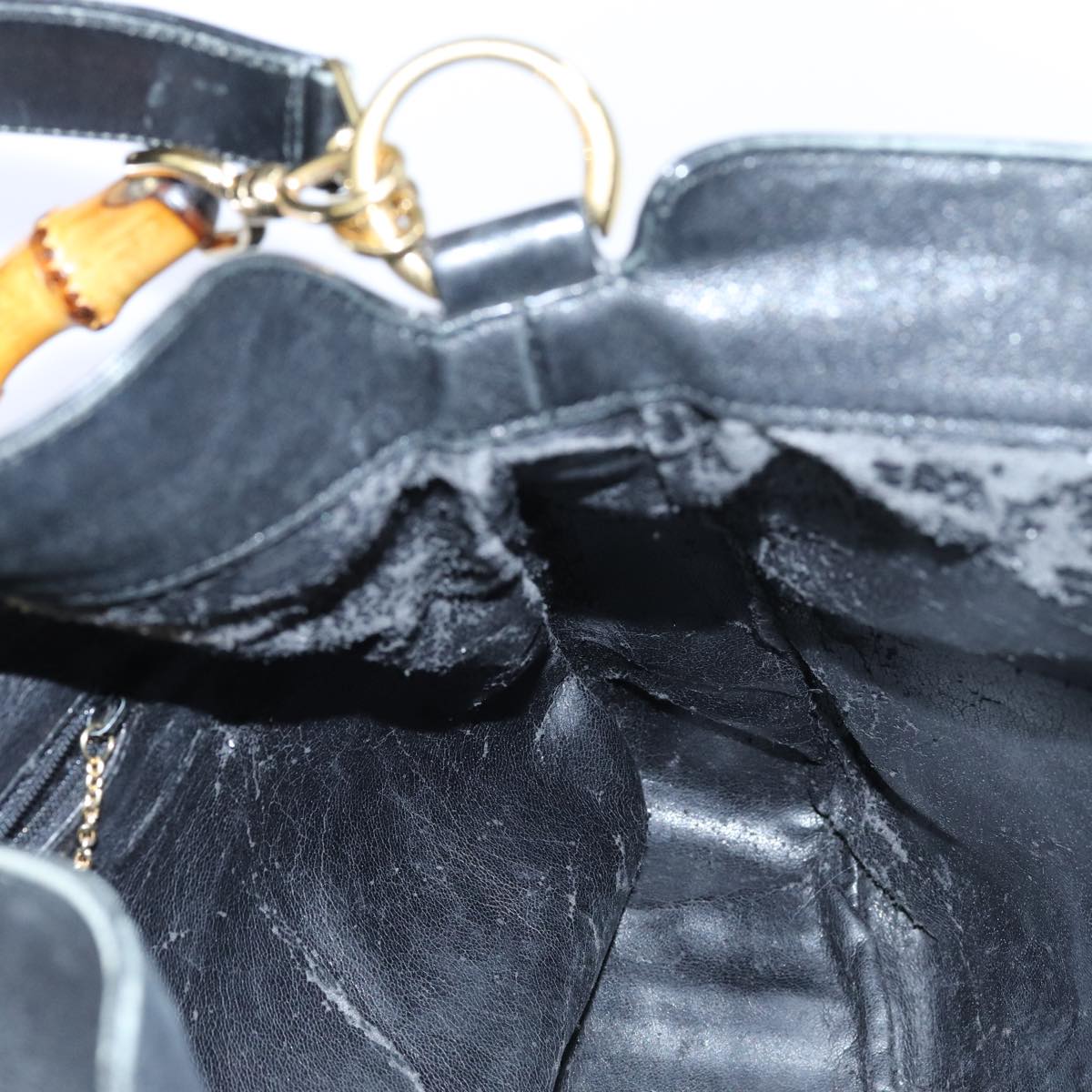 GUCCI Bamboo Shoulder Bag Leather 2way Black Auth 71317