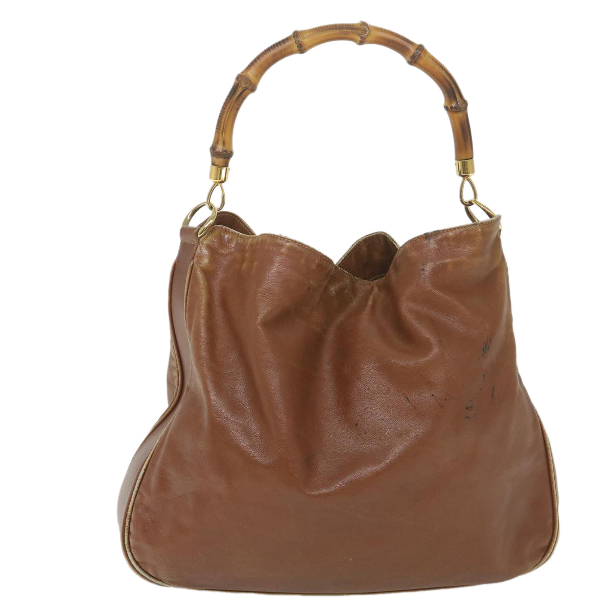 GUCCI Bamboo Shoulder Bag Leather 2way Brown Auth ac2472