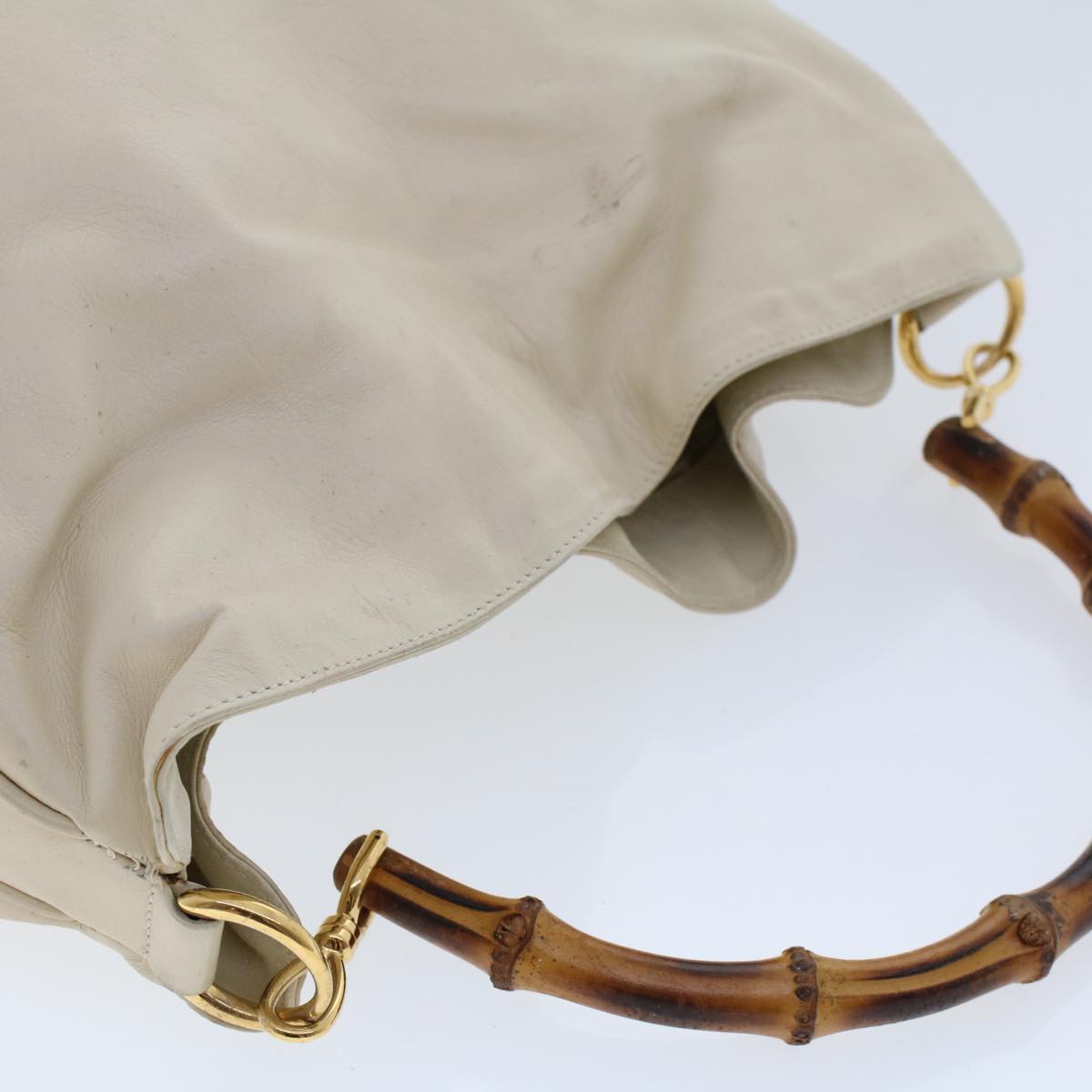 GUCCI Bamboo Shoulder Bag Leather Beige Brown ar9898B
