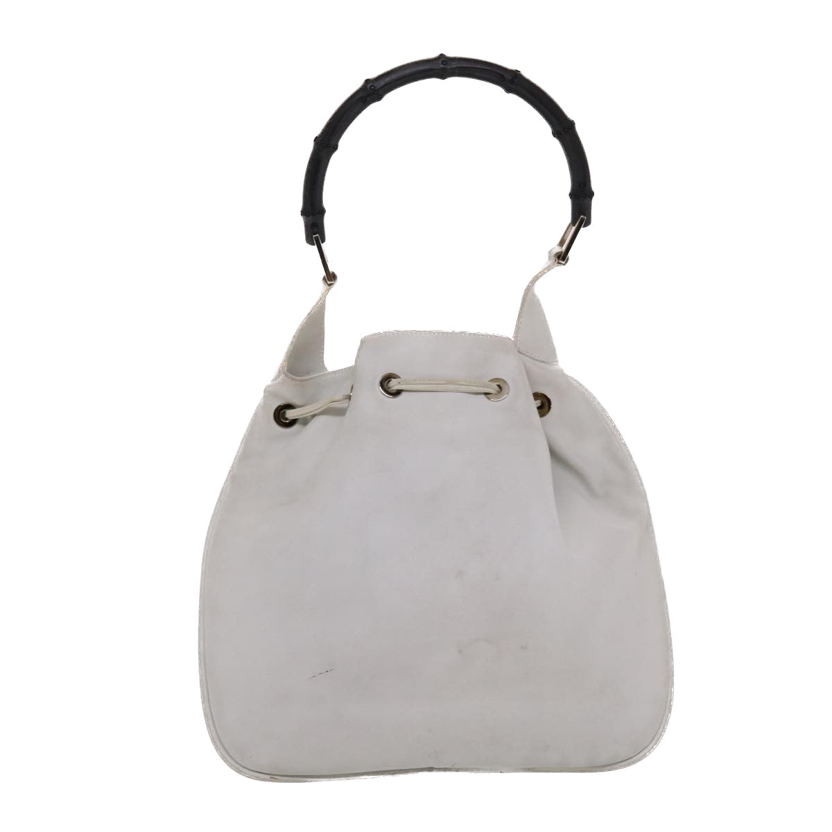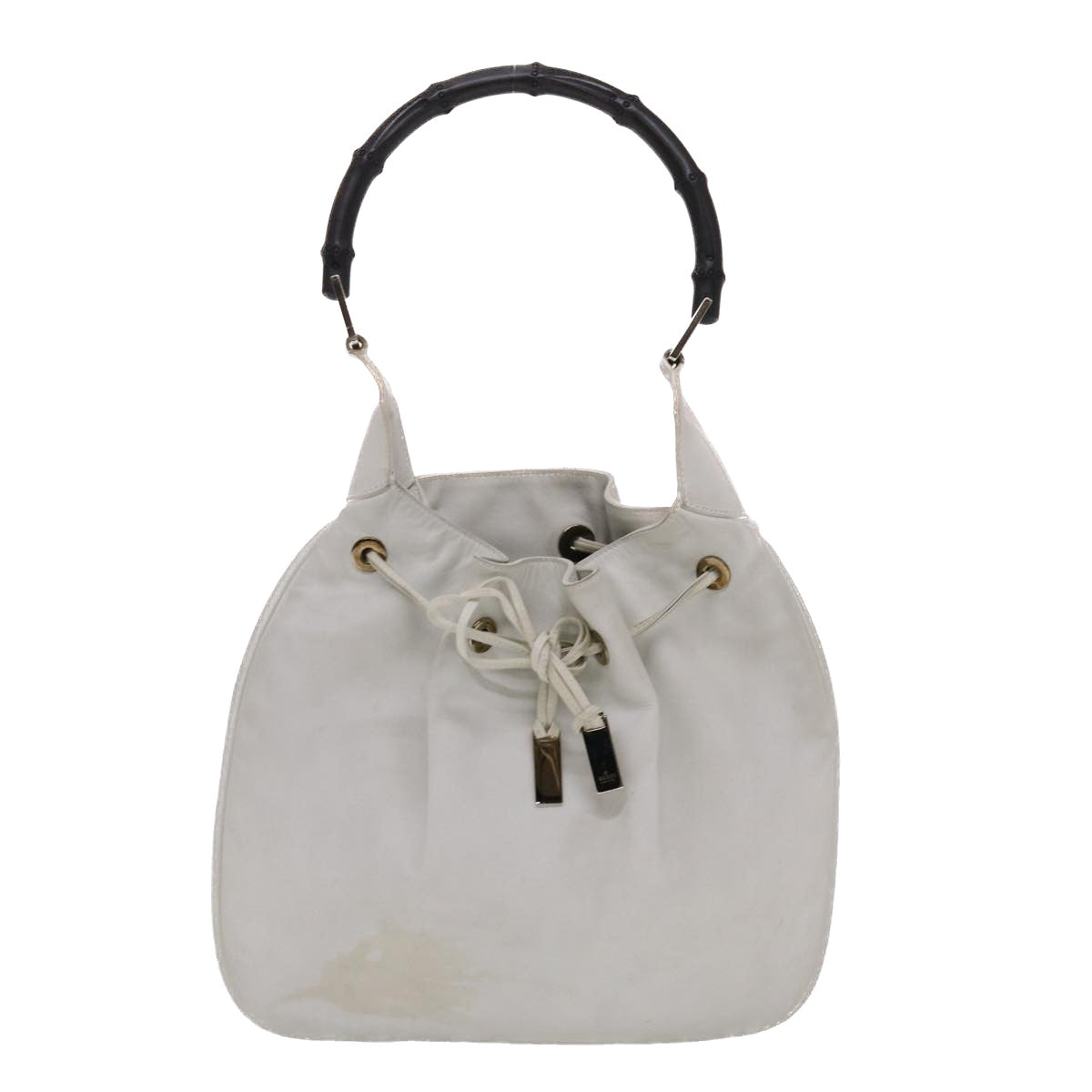 GUCCI Bamboo Shoulder Bag Leather White 49084