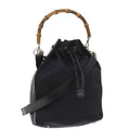 GUCCI Bamboo Shoulder Bag Nylon 2way Black Auth bs9976