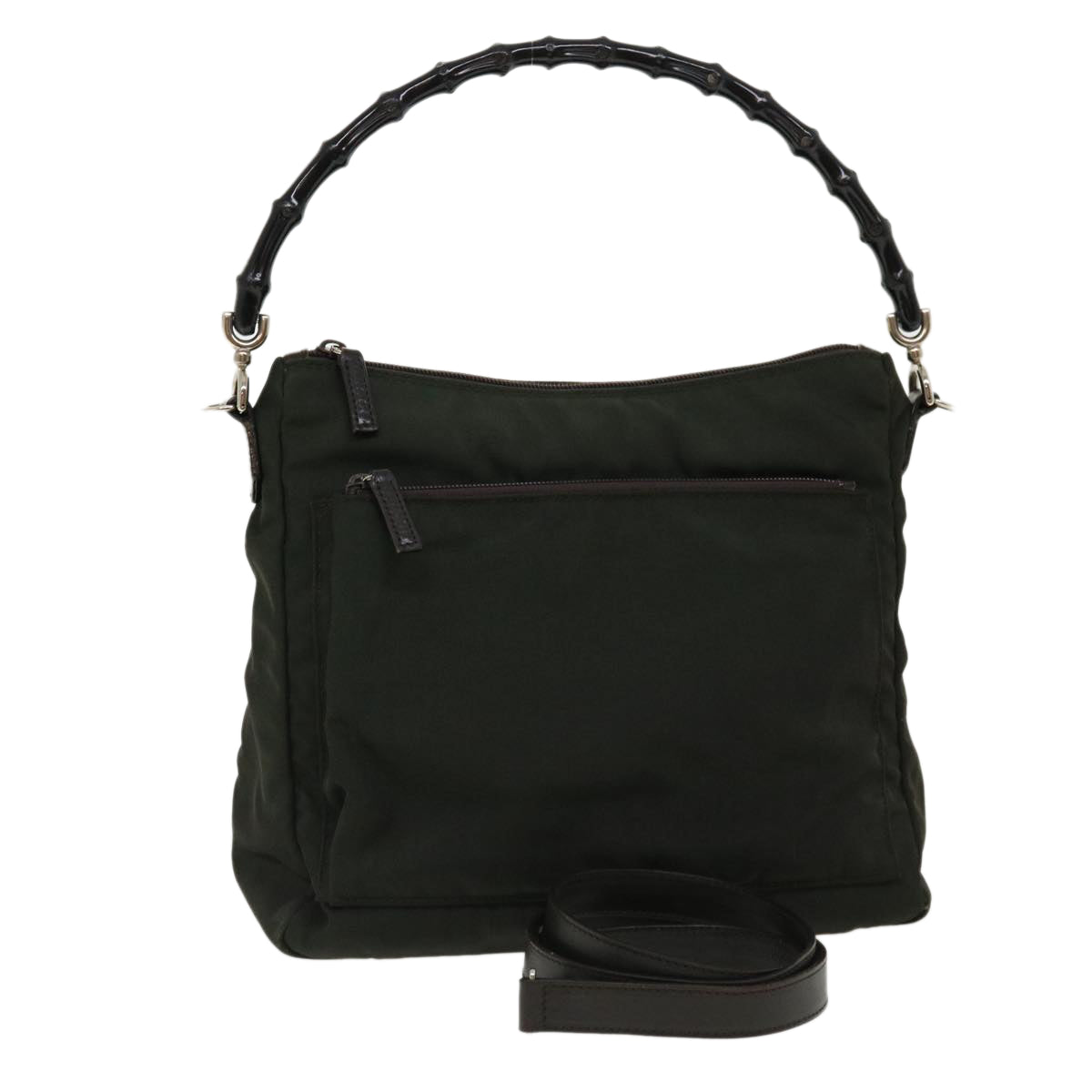 GUCCI Bamboo Shoulder Bag Nylon 2way Khaki 00005092122 ki2191