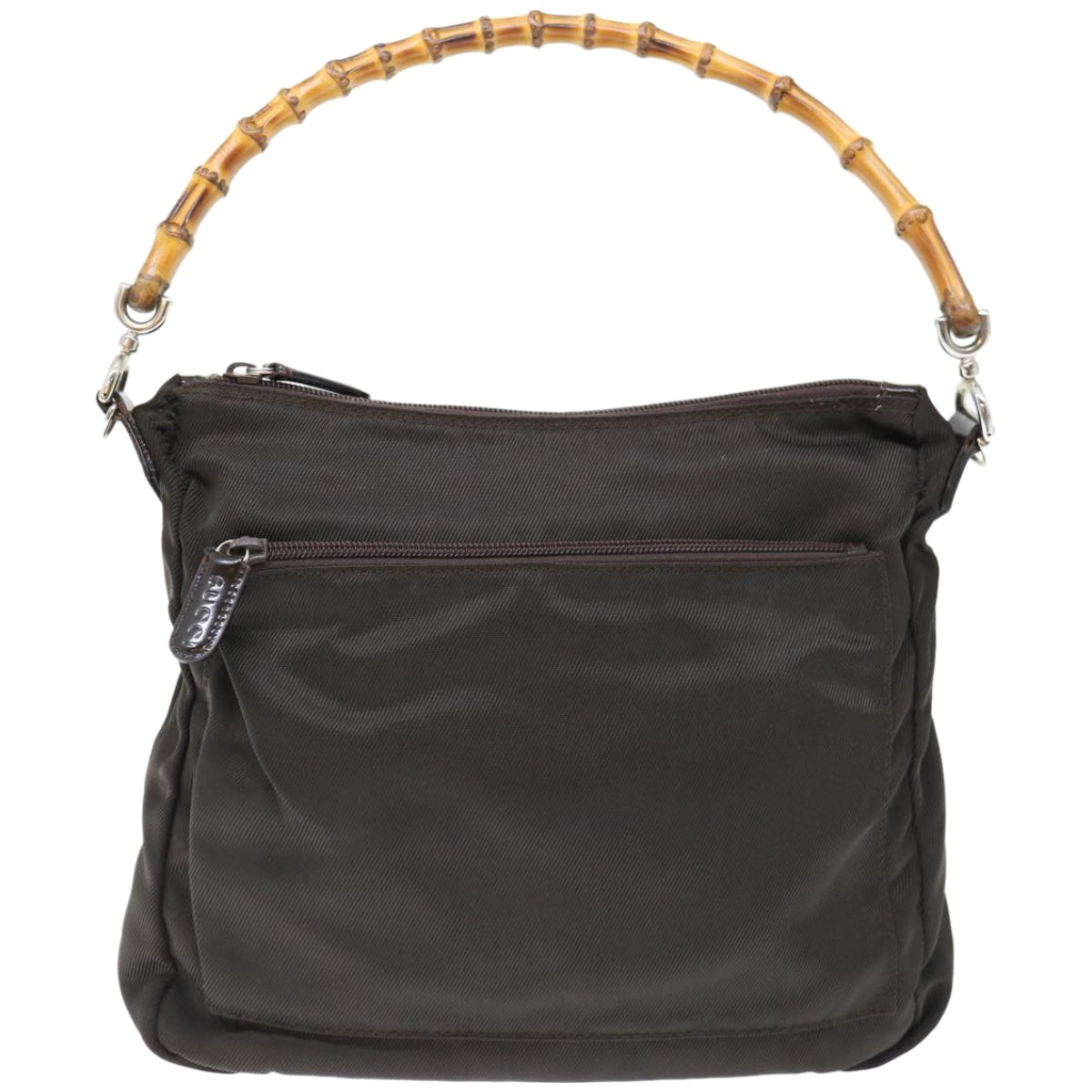 GUCCI Bamboo Shoulder Bag Nylon Brown 000 2058 0509 5 Auth 66950