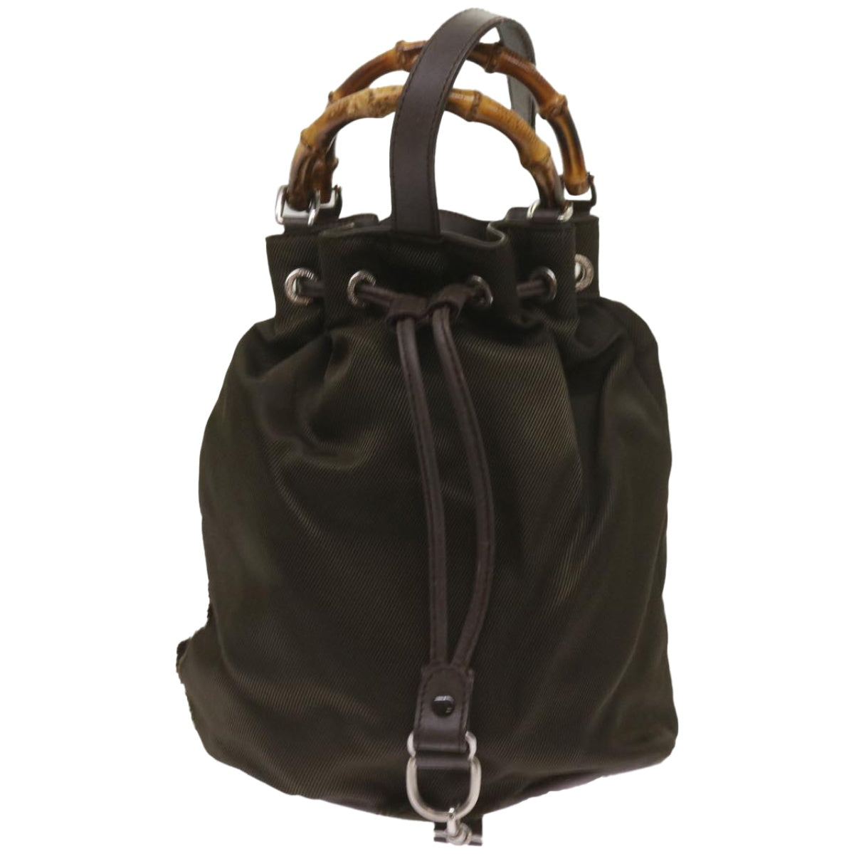 GUCCI Bamboo Shoulder Bag Nylon Khaki 003 2854 0060 5 Auth 67350