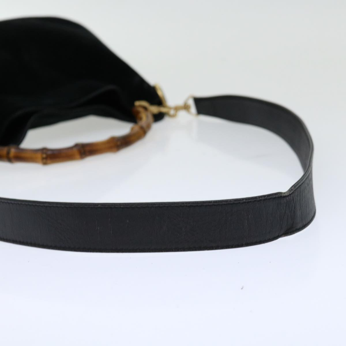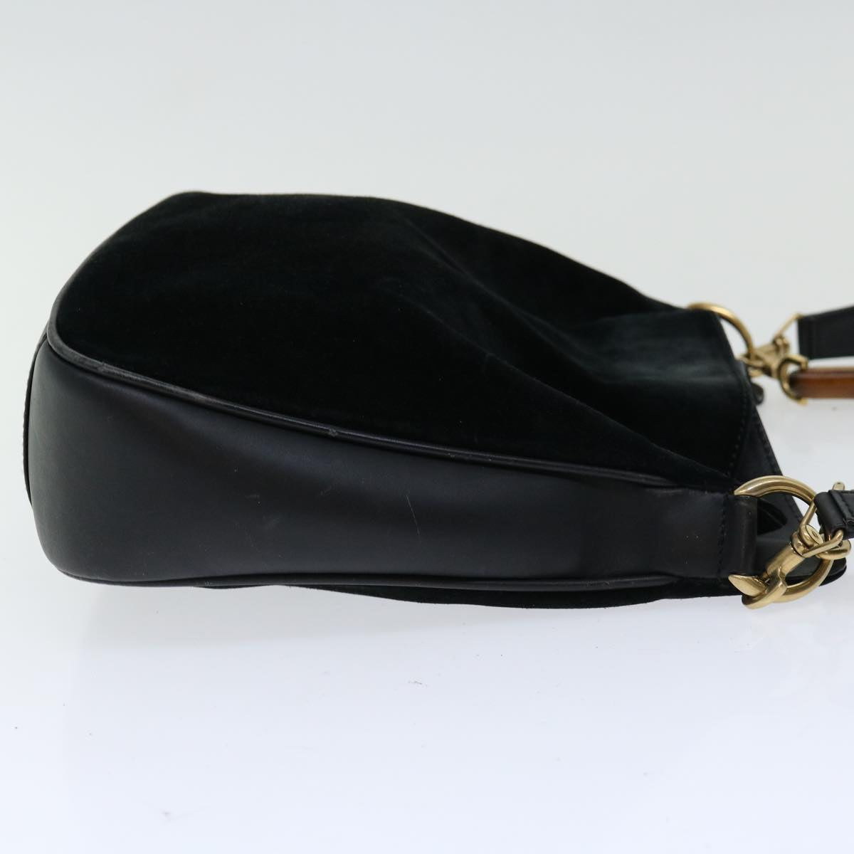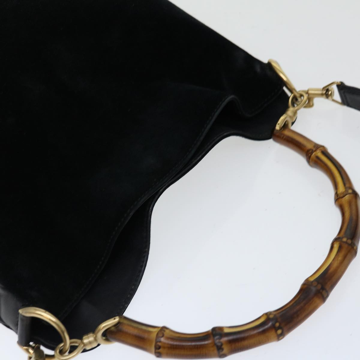 GUCCI Bamboo Shoulder Bag Suede 2way Black Auth 70145