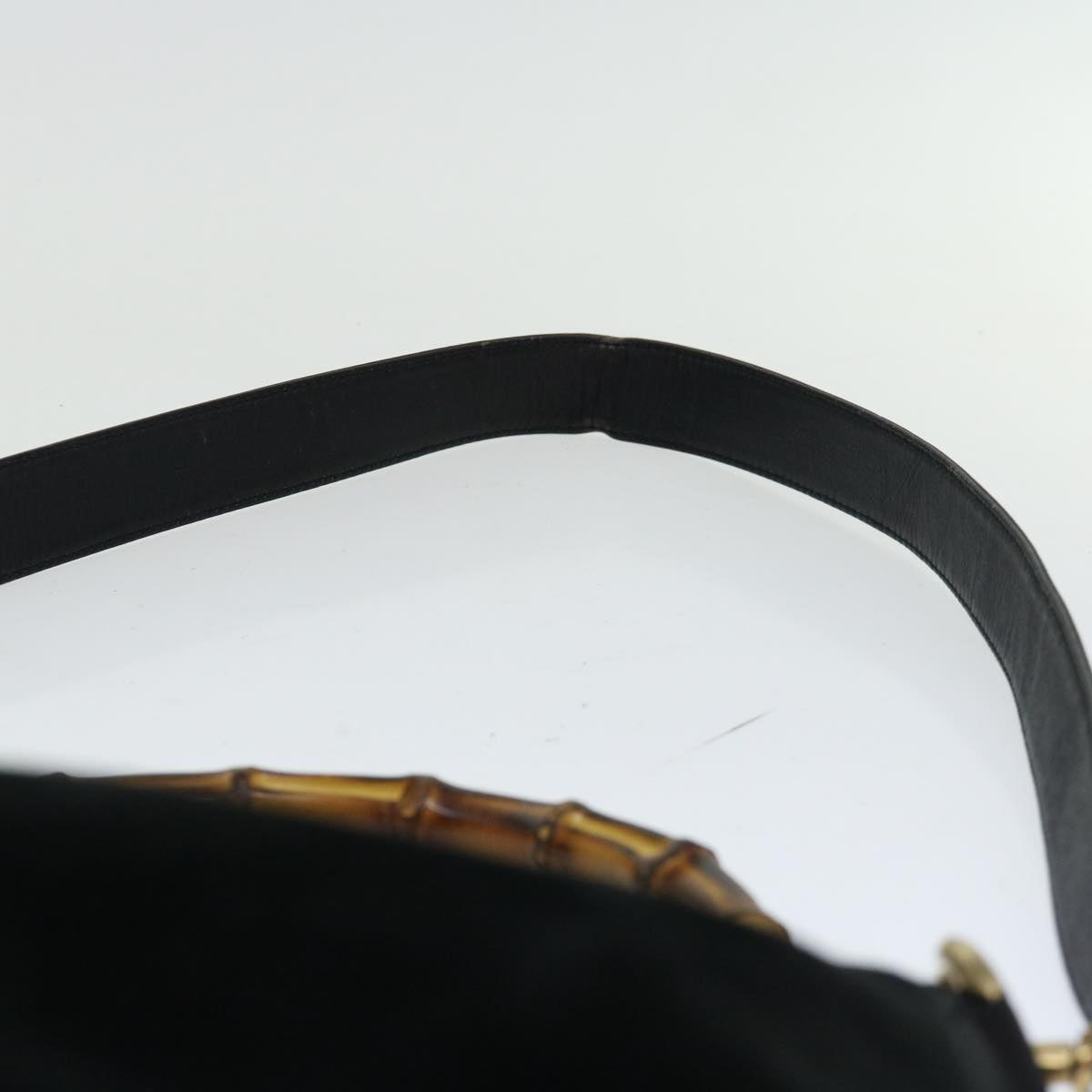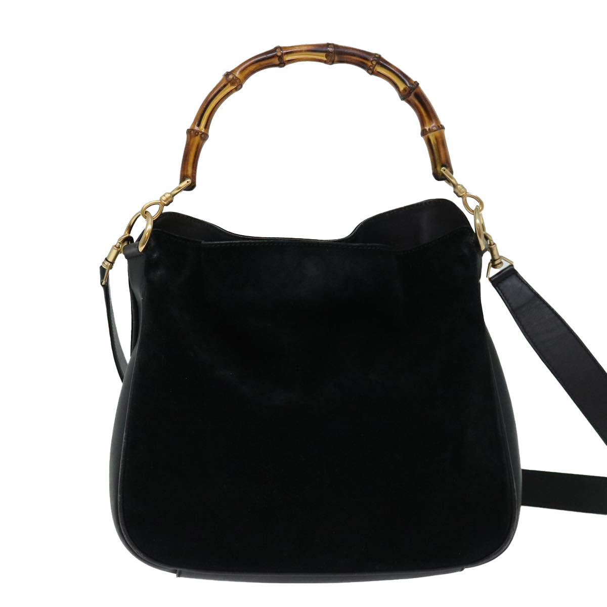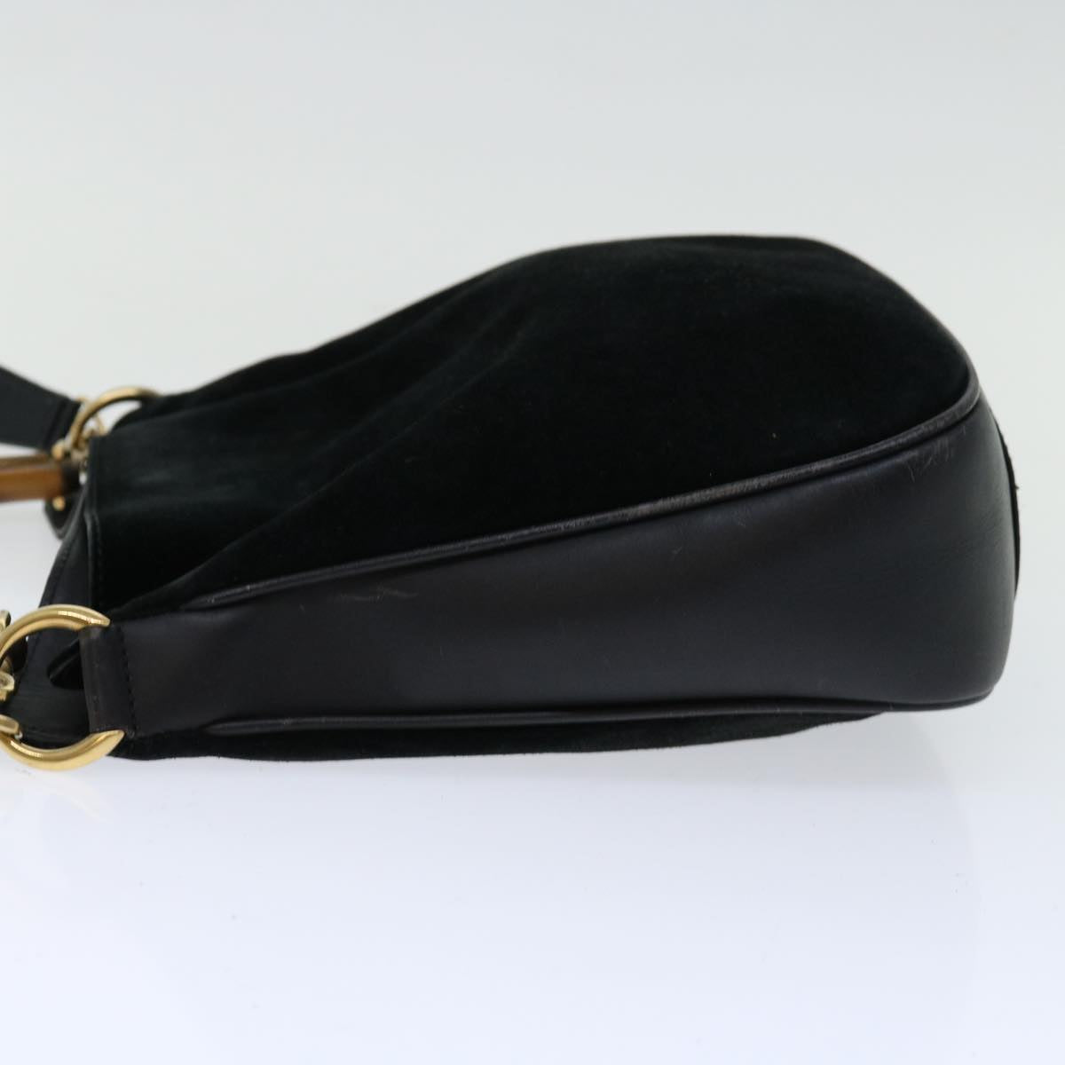 GUCCI Bamboo Shoulder Bag Suede 2way Black Auth 70145
