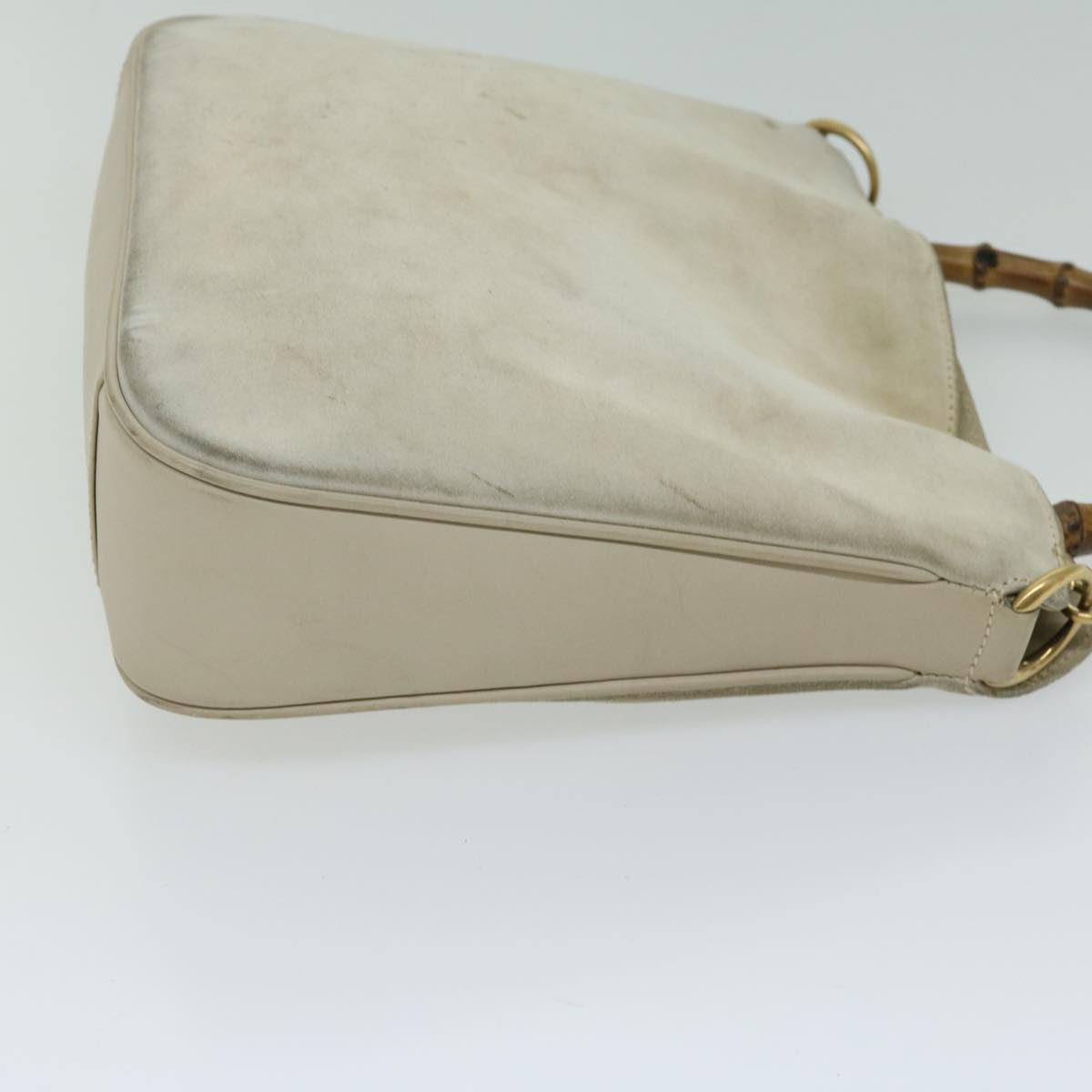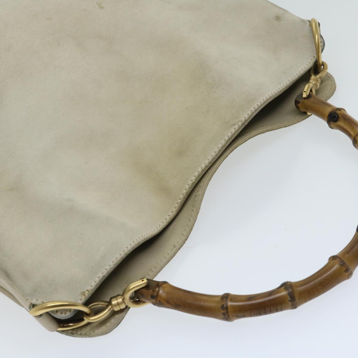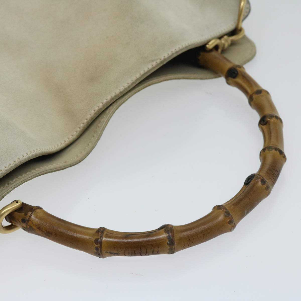 GUCCI Bamboo Shoulder Bag Suede Cream 001 2113 1638 Auth 66800