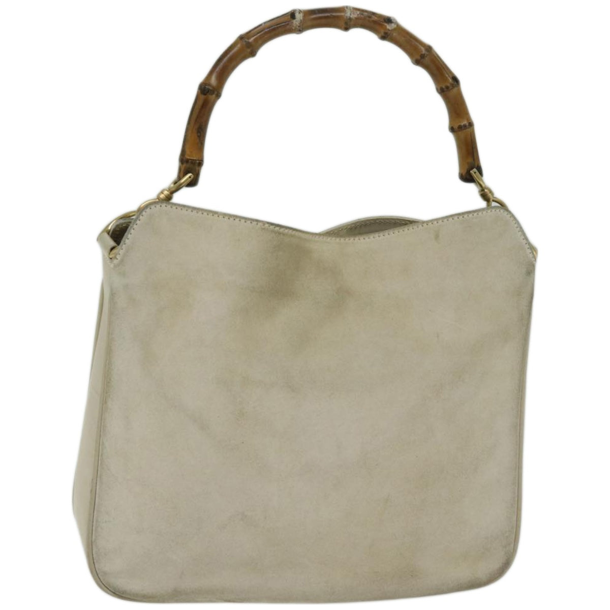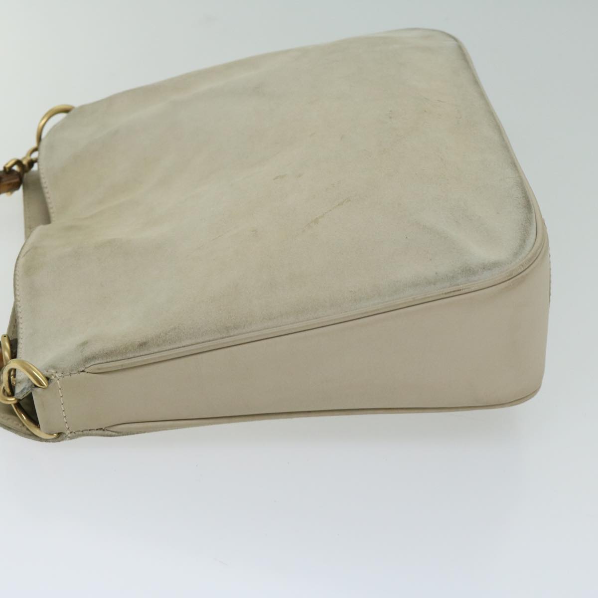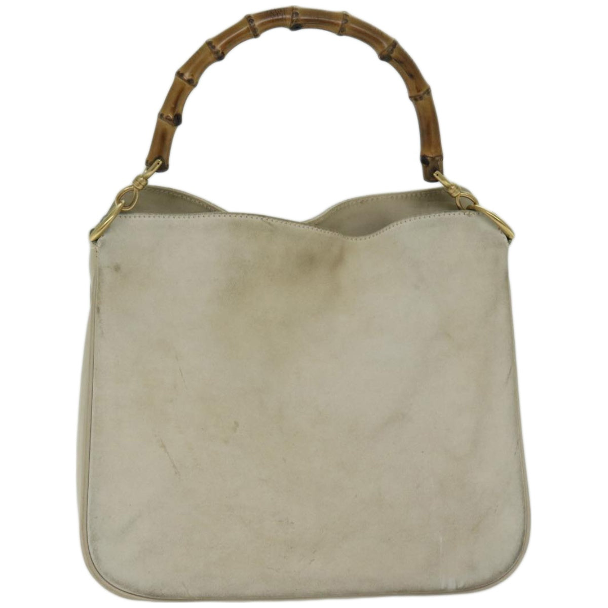 GUCCI Bamboo Shoulder Bag Suede Cream 001 2113 1638 Auth 66800