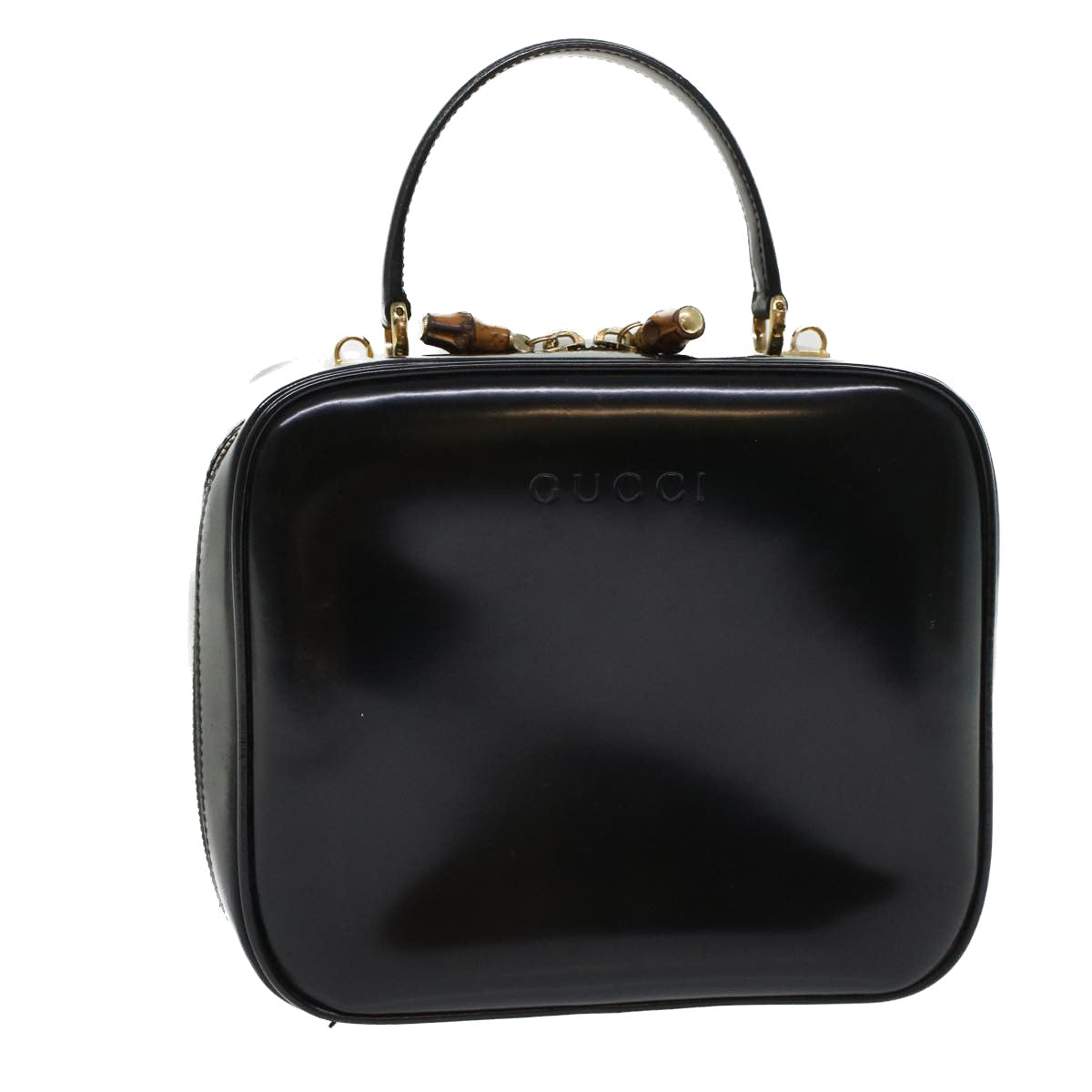 GUCCI Bamboo Vanity Cosmetic Pouch Patent leather Black bs6279