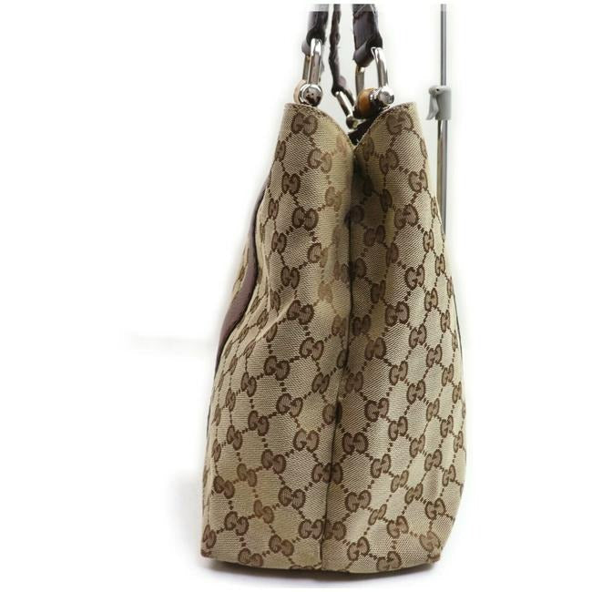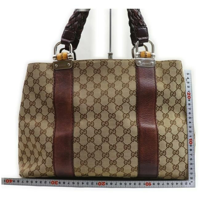 Gucci Bar Shoulder Bag Print Canvasleather With Bamboo Chrome Accents Brown Guccissima Canvas And Le