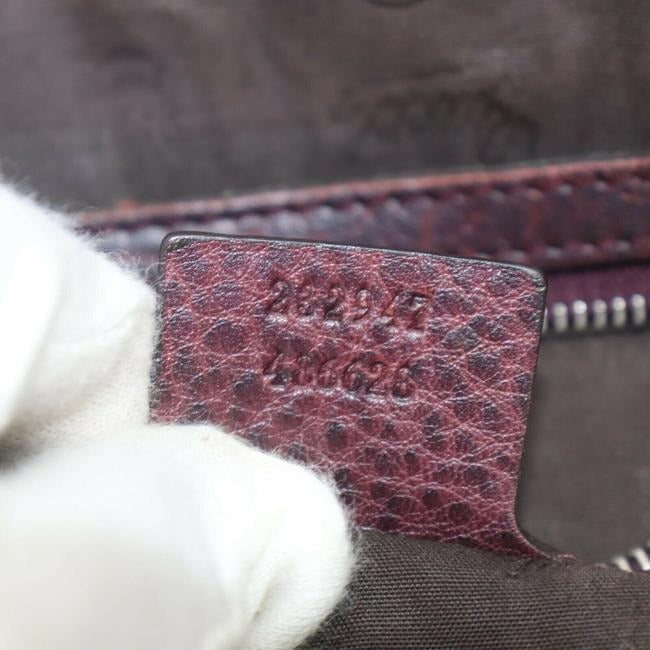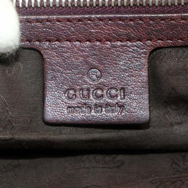 The bag is in amazing condition! The interior is lined with brown fabric with the Gucci logo print throughout. The lining is very clean and, in my opinion, it looks very lightly used! Inside, it has three compartments, with the center one zipping close. there is one interior zip close and a few slot pockets. It has a leather embossed tag that reads, 'Gucci, Made in Italy' on one side and it has the serial #232947 486628 on the back! It is the perfect size for everyday use- don't miss out!