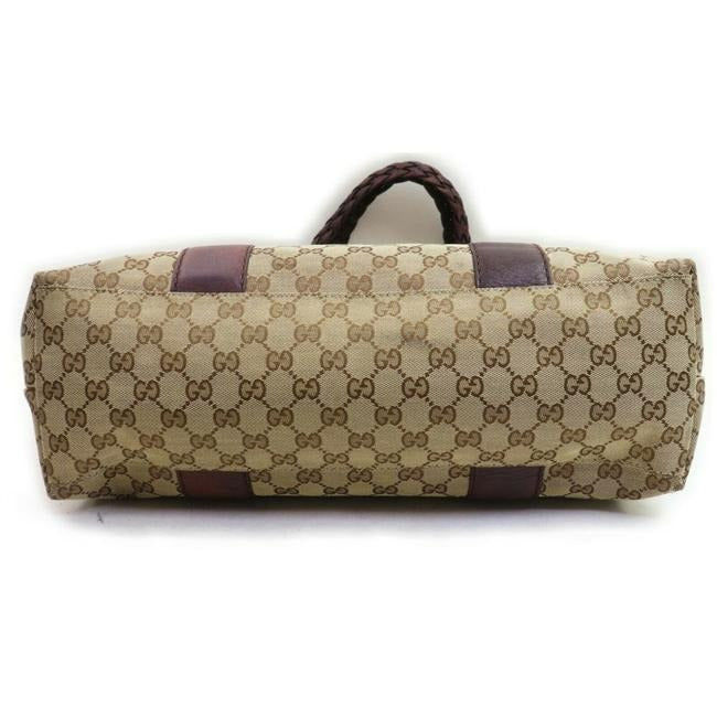 The bag is the perfect, modern, high-end bohemian take on the classic satchel style from Gucci! It is a very roomy, larger size made of brown Guccissima print canvas and brown leather with great, high-end bohemian accents, such as bamboo accents and braided leather handles! The purse has an open top closure and chrome hardware.