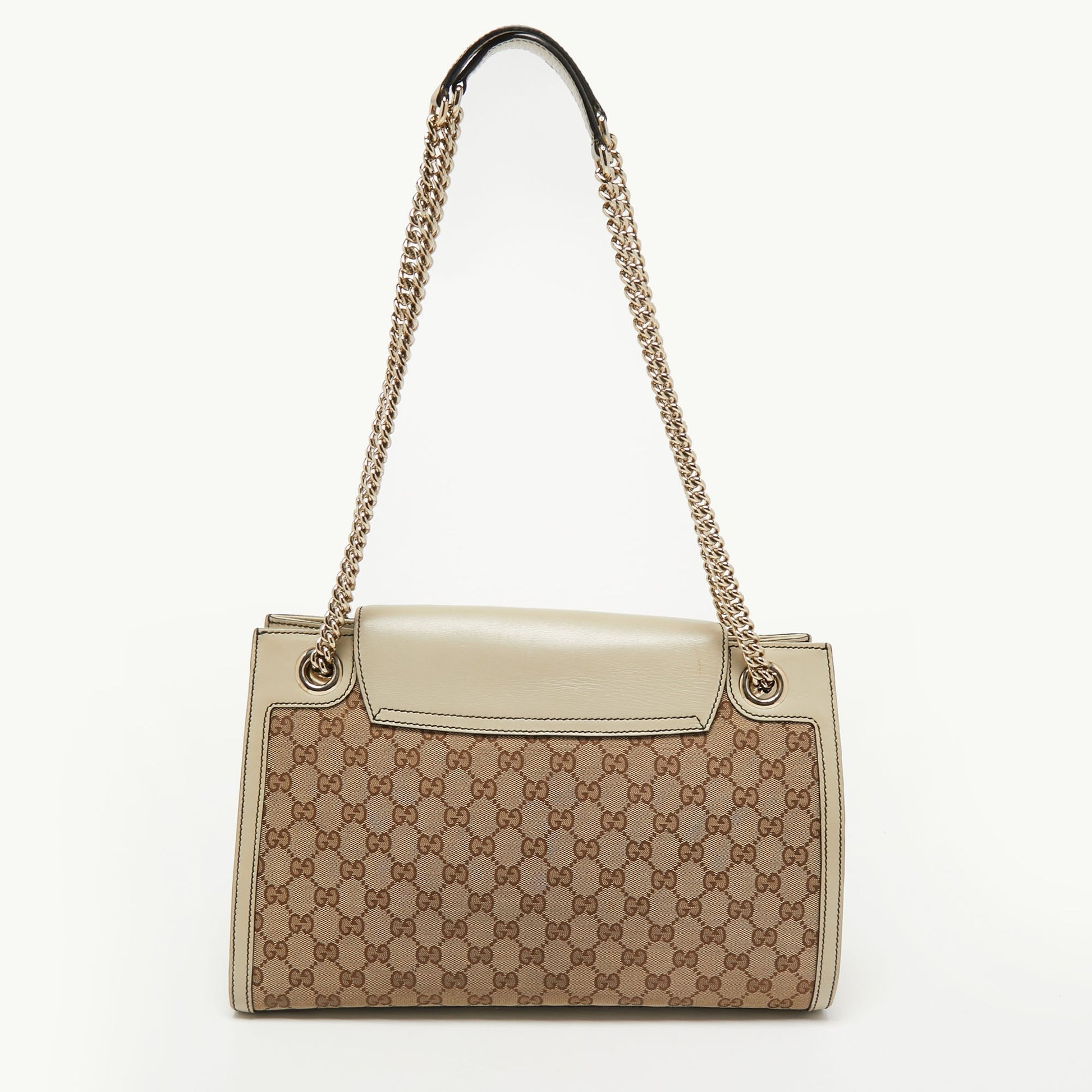 Gucci Beige GG Canvas and Leather Large Emily Chain Shoulder Bag