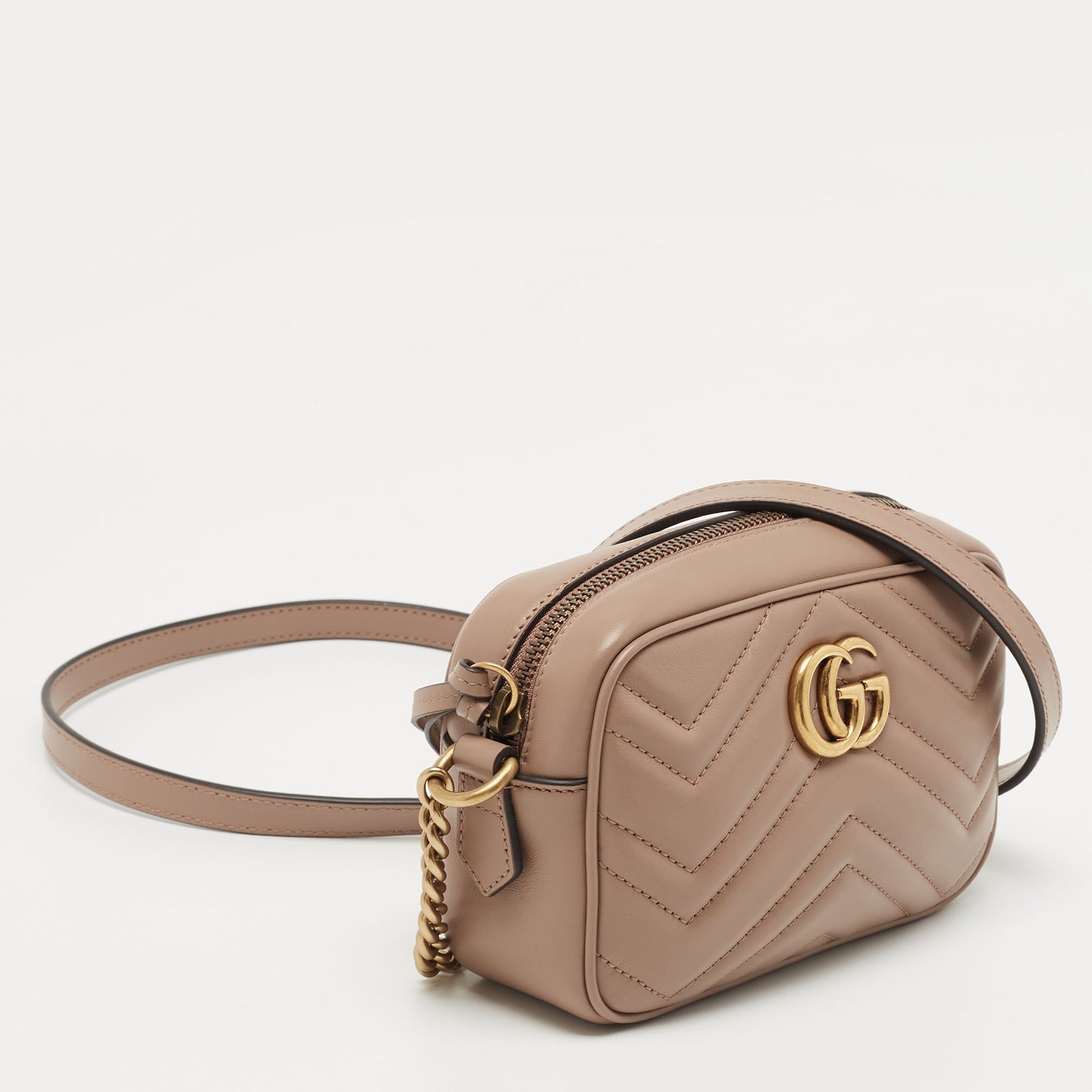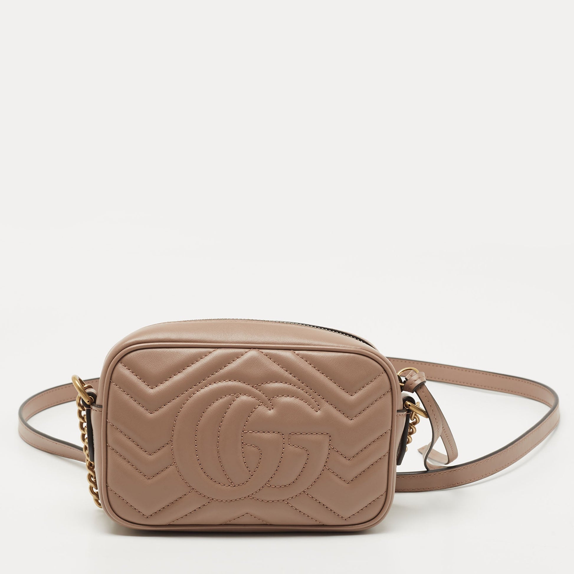 Gucci Beige Matelasse Leather Mini GG Marmont Camera Bag
